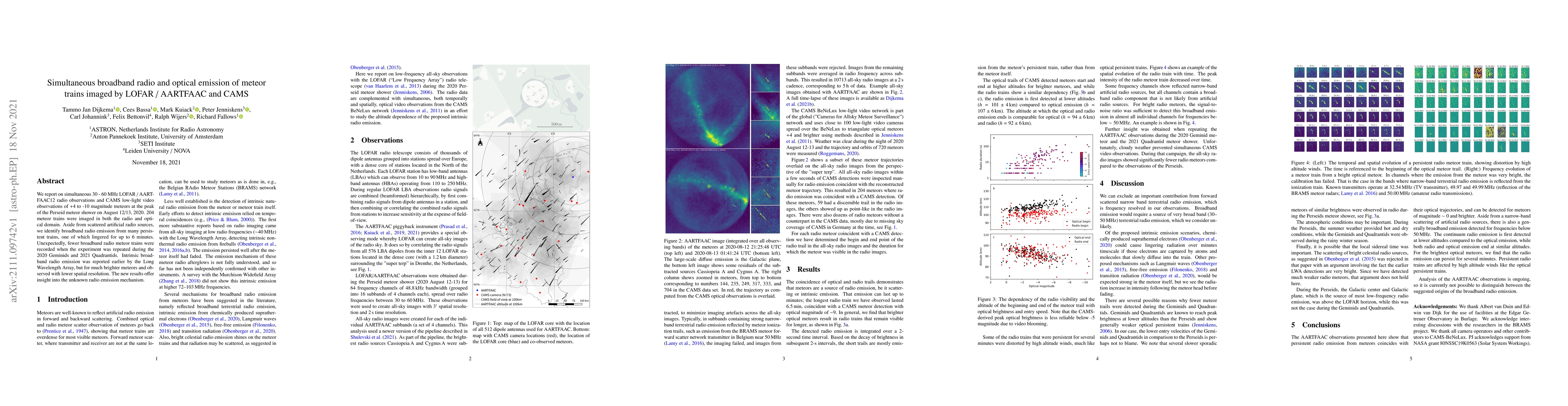 A study using LOFAR / AARTFAAC and CAMS telescopes detected broadband radio emission from 204 meteor trains during the Perseid meteor shower, offering new insights into an unknown radio emission mechanism.