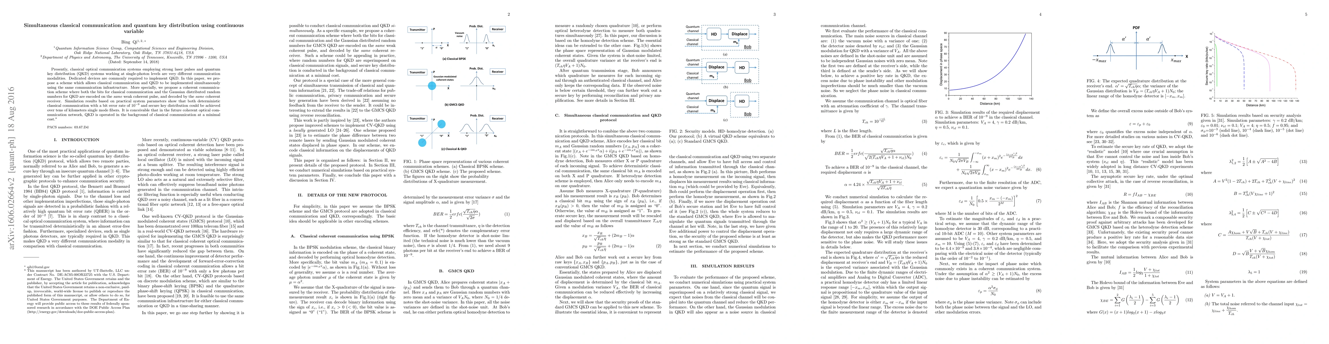 This paper proposes a scheme for simultaneous classical communication and quantum key distribution (QKD) using continuous variable techniques. It integrates both functionalities within a single coherent optical communication infrastructure, achieving secure key distribution alongside deterministic classical communication over long distances.