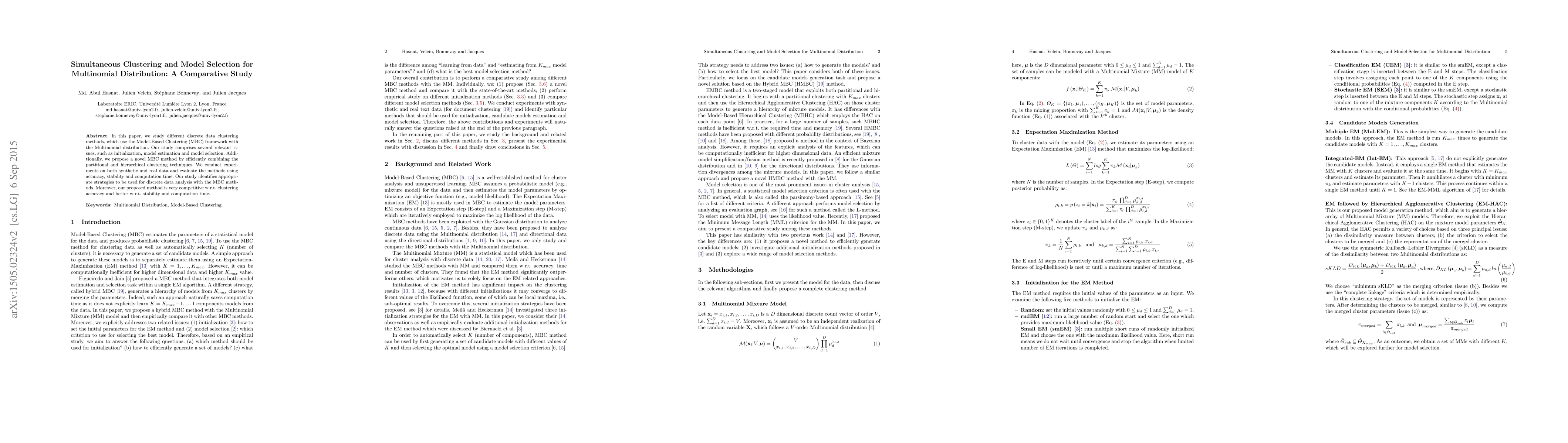 This paper compares various Model-Based Clustering methods for multinomial distributions, proposing a novel hybrid technique that combines partitional and hierarchical clustering. Experiments on synthetic and real data show that the proposed method is competitive in accuracy, superior in stability, and faster in computation time.