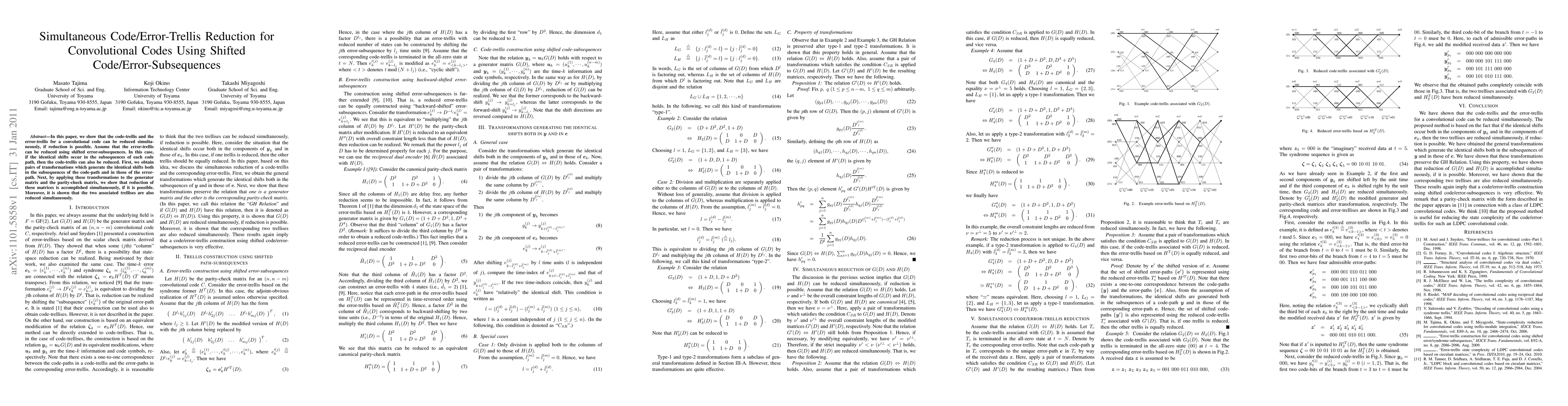 This paper proposes a method for simultaneous reduction of both the code-trellis and error-trellis in convolutional codes using shifted error-subsequences. It demonstrates that identical shifts in error-subsequences lead to corresponding reductions in the code-trellis, achieved through transformations applied to the generator and parity-check matrices.