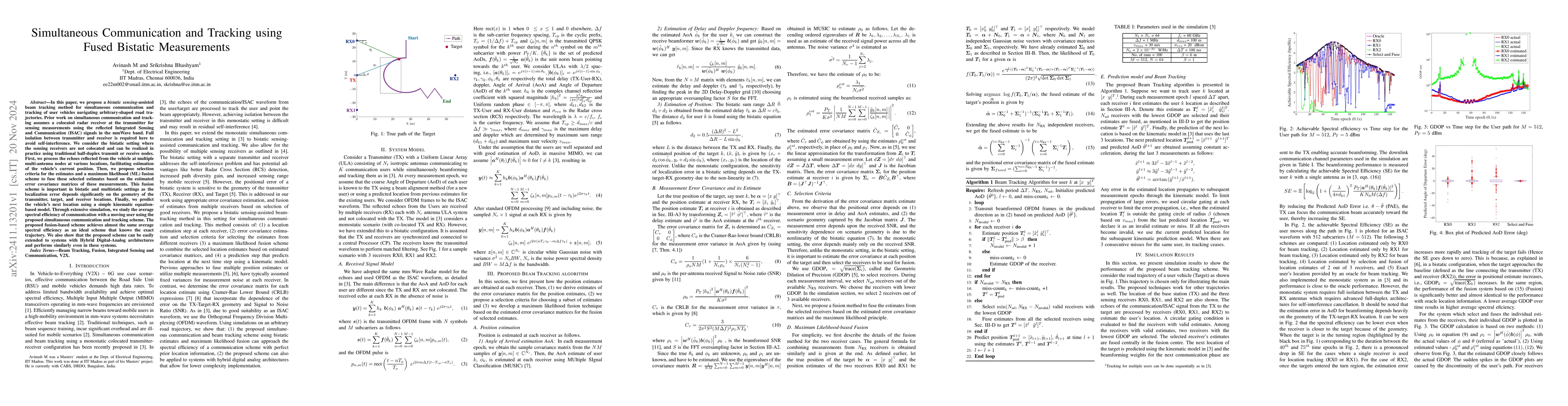 In this paper, we propose a bistatic sensing-assisted beam tracking method for simultaneous communication and tracking of user vehicles navigating arbitrary-shaped road trajectories. Prior work on simultaneous communication and tracking assumes a colocated radar receiver at the transmitter for sensing measurements using the reflected Integrated Sensing and Communication (ISAC) signals in the mmWave band. Full isolation between transmitter and receiver is required here to avoid self-interference. We consider the bistatic setting where the sensing receivers are not colocated and can be realized in practice using traditional half-duplex transmit or receive nodes. First, we process the echoes reflected from the vehicle at multiple multi-antenna nodes at various locations, facilitating estimation of the vehicle's current position. Then, we propose selection criteria for the estimates and a maximum likelihood (ML) fusion scheme to fuse these selected estimates based on the estimated error covariance matrices of these measurements. This fusion scheme is important in bistatic and multistatic settings as the localization error depends significantly on the geometry of the transmitter, target, and receiver locations. Finally, we predict the vehicle's next location using a simple kinematic equation-based model. Through extensive simulation, we study the average spectral efficiency of communication with a moving user using the proposed simultaneous communication and tracking scheme. The proposed fusion-based scheme achieves almost the same average spectral efficiency as an ideal scheme that knows the exact trajectory. We also show that the proposed scheme can be easily extended to systems with Hybrid Digital-Analog architectures and performs similarly even in these systems.