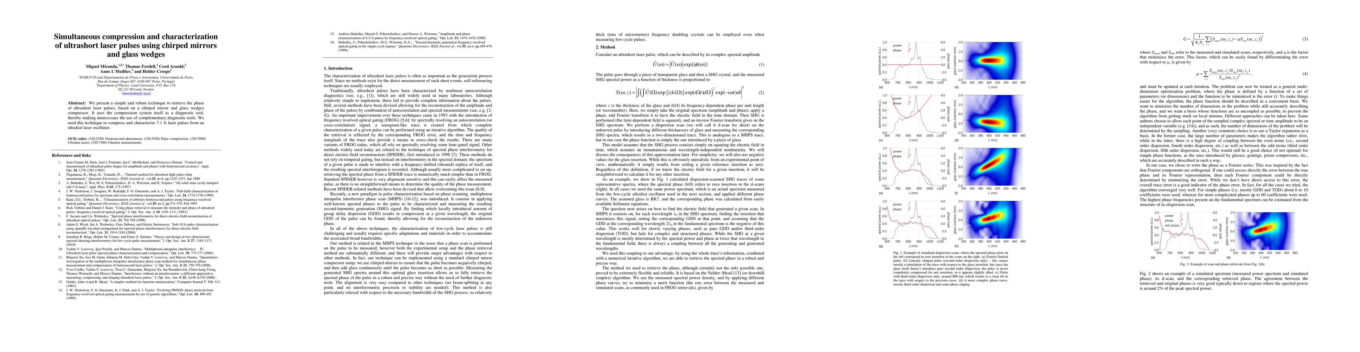 This paper introduces a method for simultaneously compressing and characterizing ultrashort laser pulses using chirped mirrors and glass wedges, eliminating the need for additional diagnostic tools. The technique successfully compresses and analyzes 7.1 fs laser pulses from an ultrafast laser oscillator.