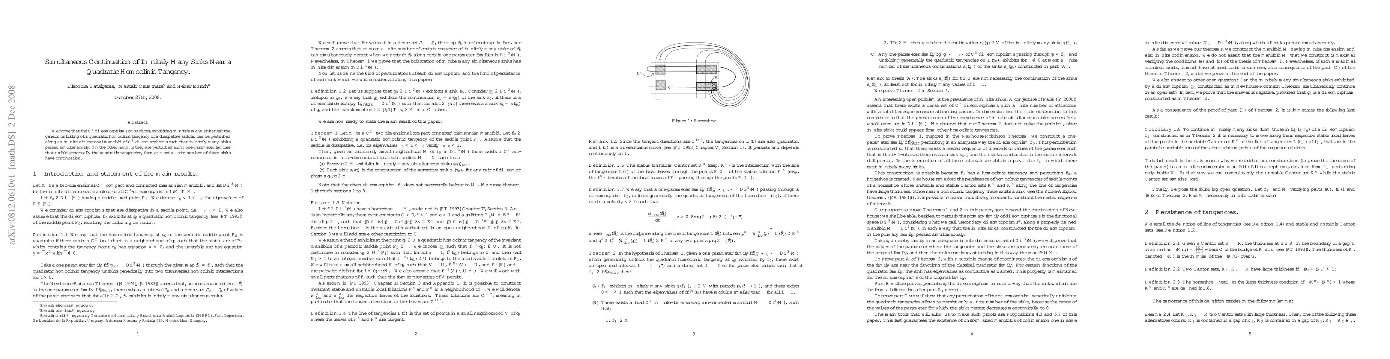 This research demonstrates that $C^3$ diffeomorphisms with infinitely many sinks near a quadratic homoclinic tangency can be continuously perturbed to maintain all sinks, while one-parameter perturbations only ensure the continuation of a finite number of these sinks.