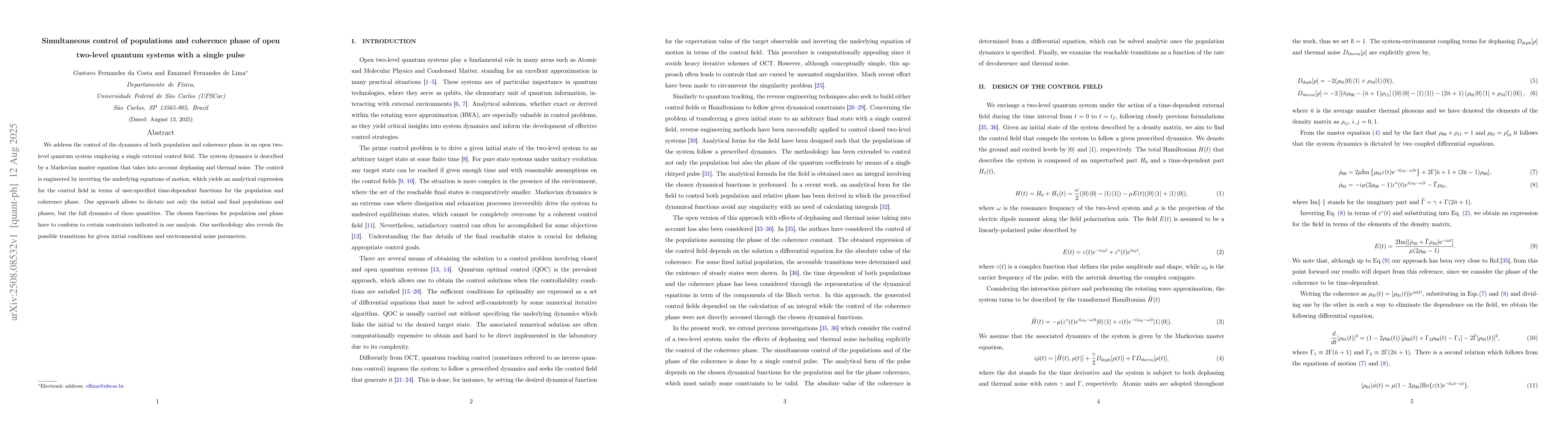 We address the control of the dynamics of both population and coherence phase in an open two-level quantum system employing a single external control field. The system dynamics is described by a Markovian master equation that takes into account dephasing and thermal noise. The control is engineered by inverting the underlying equations of motion, which yields an analytical expression for the control field in terms of user-specified time-dependent functions for the population and coherence phase. Our approach allows to dictate not only the initial and final populations and phases, but the full dynamics of these quantities. The chosen functions for population and phase have to conform to certain constraints indicated in our analysis. Our methodology also reveals the possible transitions for given initial conditions and environmental noise parameters.