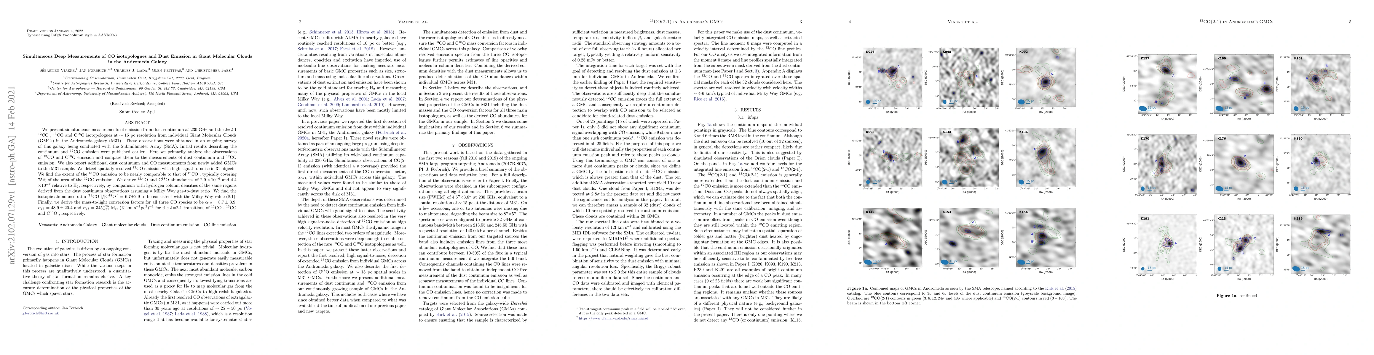 This paper reports simultaneous measurements of dust emission and CO isotopologues in Giant Molecular Clouds of the Andromeda Galaxy, revealing comparable spatial extents for $^{13}$CO and $^{12}$CO emissions. The study derives isotopic abundances and mass-to-light conversion factors for CO isotopologues, finding them consistent with Milky Way values.