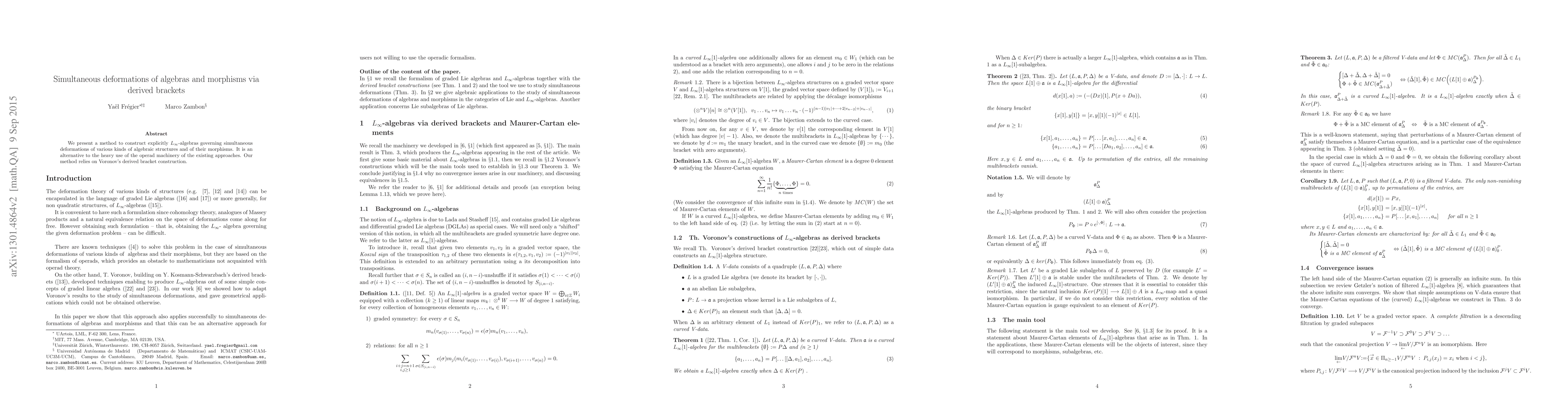This paper introduces a novel method using Voronov's derived bracket construction to explicitly construct L-infinity algebras that govern simultaneous deformations of algebraic structures and their morphisms, offering an alternative to operad-based approaches.