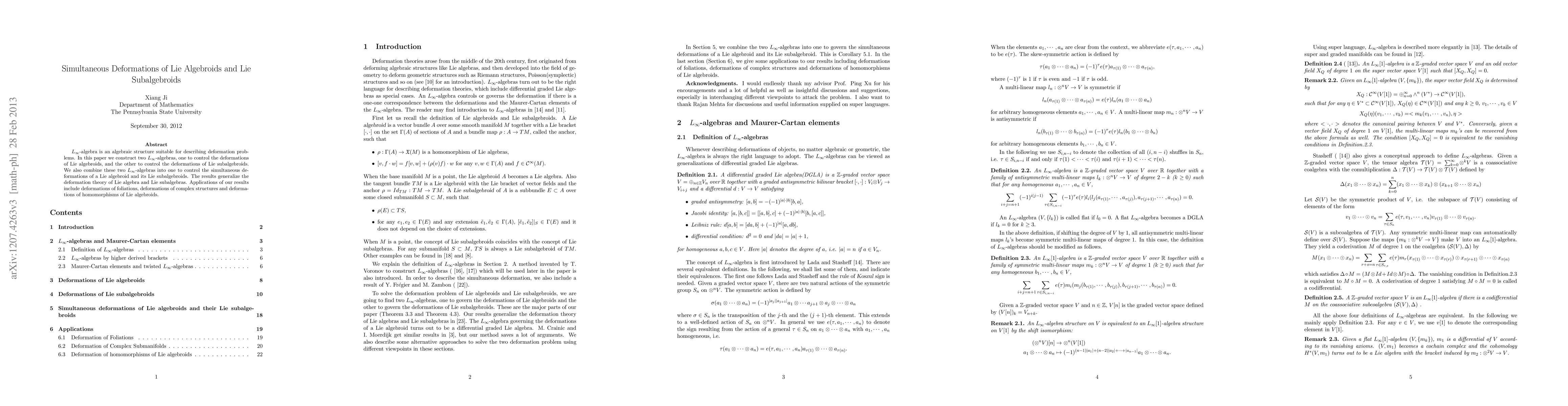 This paper constructs $L_\infty$-algebras to manage deformations of Lie algebroids and their subalgebroids, generalizing existing deformation theories. It combines these structures to simultaneously control both types of deformations, with applications to foliations, complex structures, and homomorphisms.