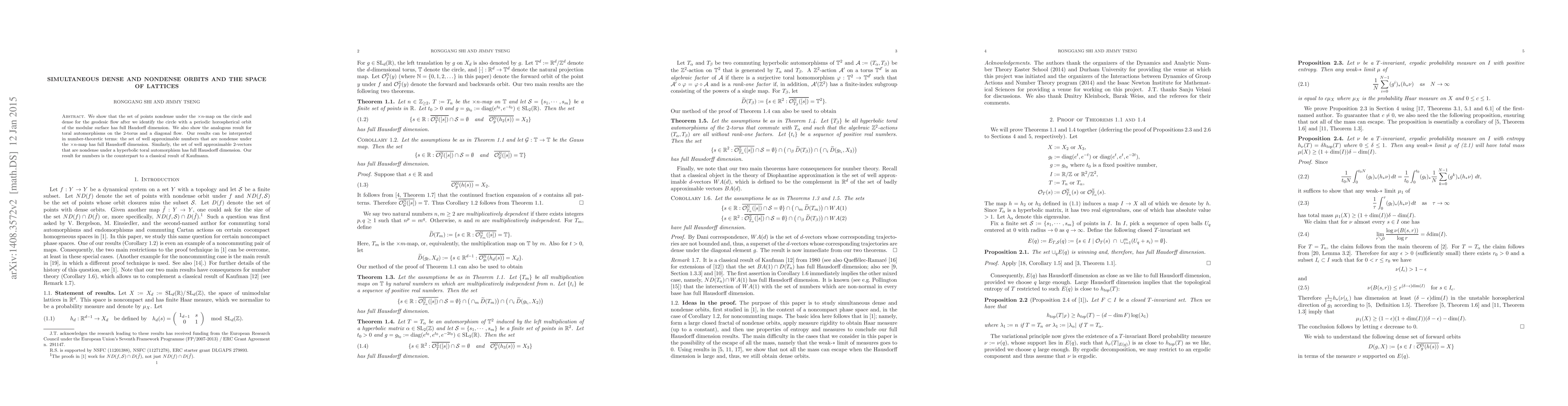 This paper demonstrates that sets of points nondense under multiplication by integers on the circle but dense under geodesic flows have full Hausdorff dimension. It also extends these findings to toral automorphisms and diagonal flows, providing a number-theoretic interpretation of well approximable numbers and vectors.