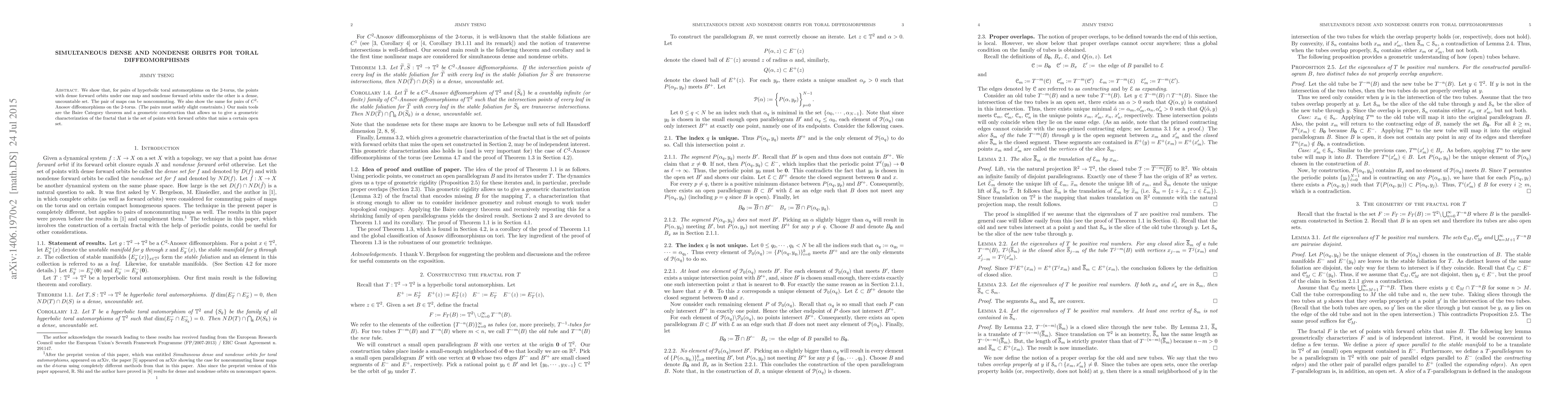 This paper demonstrates that for pairs of hyperbolic toral automorphisms or $C^2$-Anosov diffeomorphisms on the $2$-torus, there exists a dense, uncountable set of points with dense orbits under one map and nondense orbits under the other, even when the maps are noncommuting. The study employs the Baire Category theorem and a geometric construction to characterize the fractal set of points with orbits missing a specific open set.