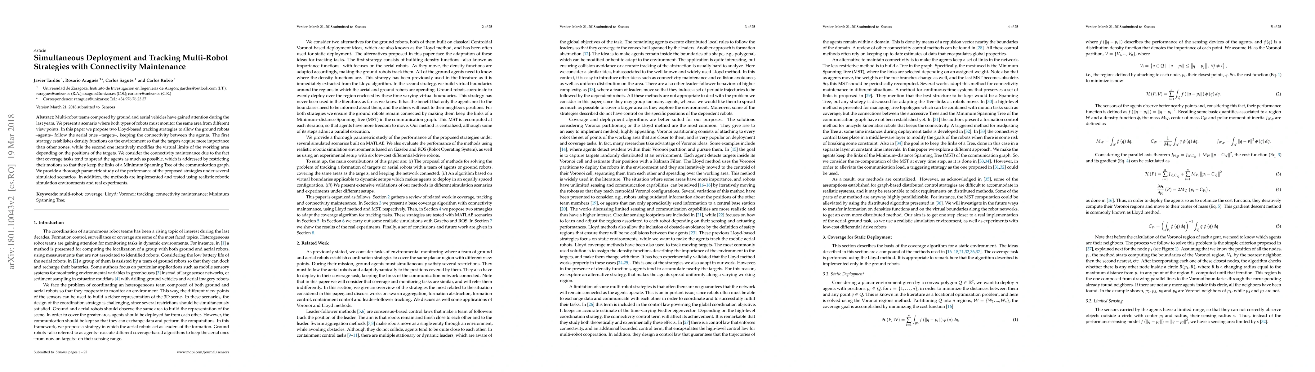 Researchers propose two tracking strategies for multi-robot teams to monitor areas from different viewpoints while maintaining connectivity between agents. The methods aim to balance coverage tasks with connectivity constraints, improving performance in simulated scenarios and real-world experiments.