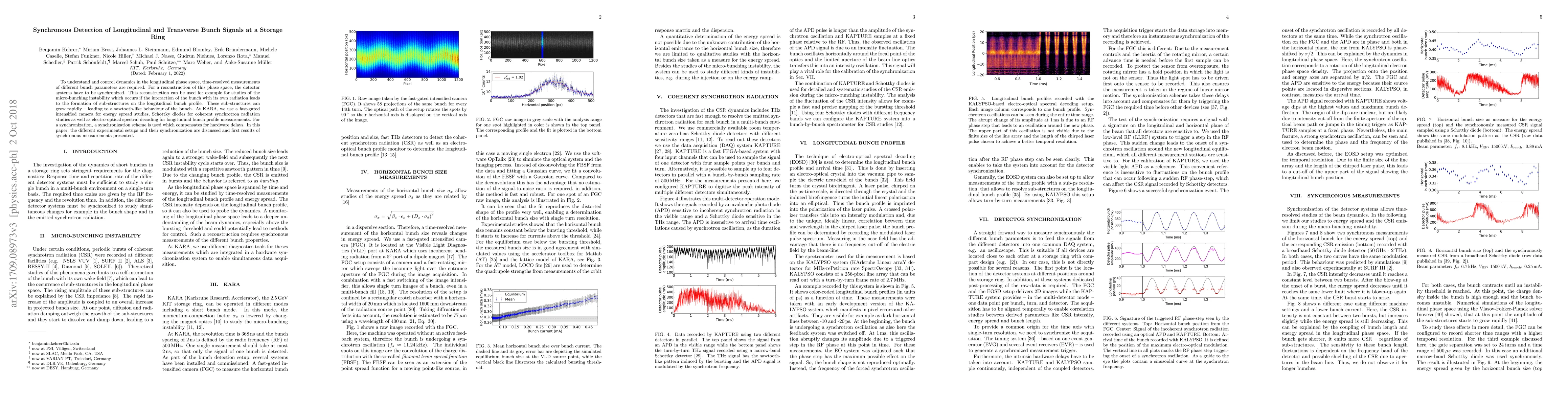 To understand and control the dynamics in the longitudinal phase space, time-resolved measurements of different bunch parameters are required. For a reconstruction of this phase space, the detector systems have to be synchronized. This reconstruction can be used e.g. for studies of the micro-bunching instability. It occurs if the interaction of the bunch with its own radiation leads to the formation of sub-structures on the longitudinal bunch profile. These sub-structures can grow rapidly -- leading to a sawtooth-like behaviour of the bunch. At KARA, we use a fast-gated intensified camera for energy spread studies, Schottky diodes for coherent synchrotron radiation studies as well as electro-optical spectral decoding for longitudinal bunch profile measurements. For a synchronization, a hardware synchronization scheme is used which compensates for eventual hardware delays. In this paper, the different experimental setups and their synchronization are discussed and first results of synchronous measurements are presented.