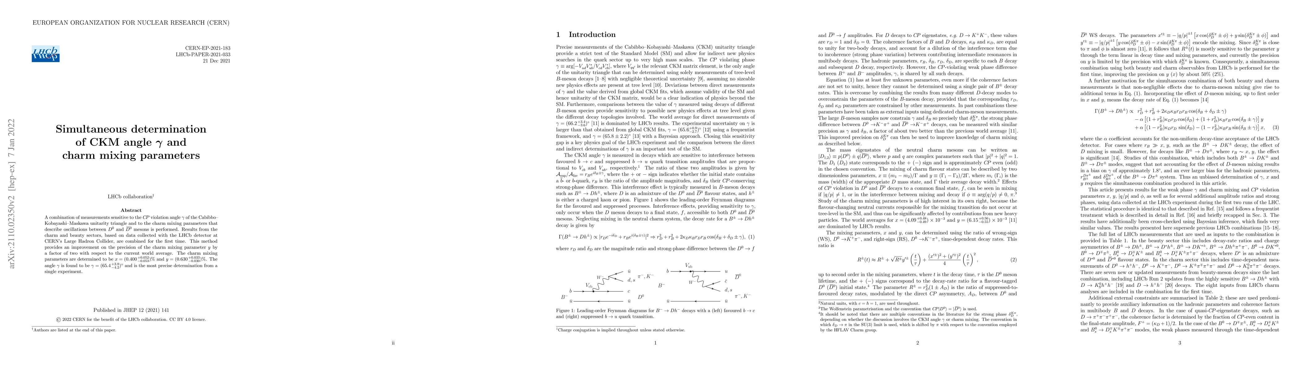 A new study combines data from LHCb detector to determine charm mixing parameters and the Cabibbo-Kobayashi-Maskawa angle η with improved precision, yielding accurate values for x = 0.400% and y = 0.630%.