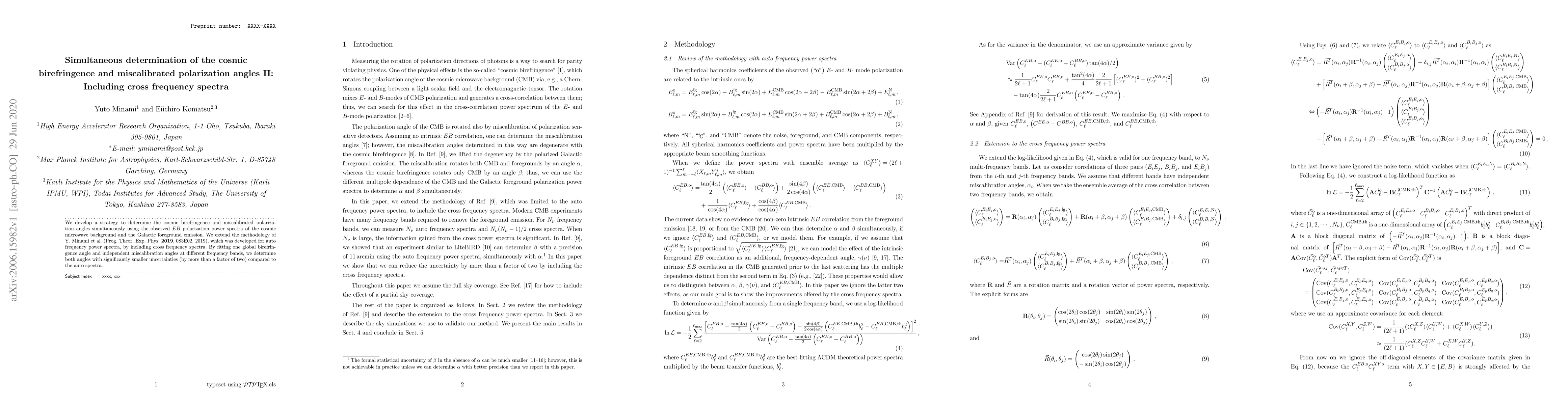 This paper presents a method to simultaneously determine cosmic birefringence and miscalibrated polarization angles using cross-frequency spectra of the cosmic microwave background and Galactic foregrounds. The approach reduces uncertainties by more than a factor of two compared to previous auto-frequency spectrum methods.