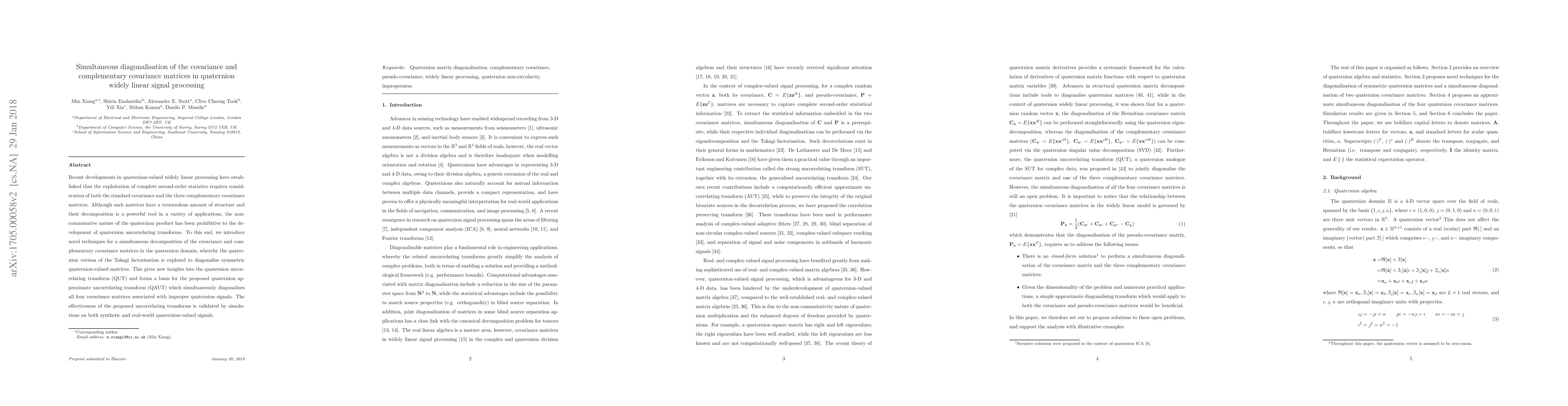 This paper introduces novel techniques for simultaneously diagonalising the covariance and complementary covariance matrices in quaternion widely linear signal processing, leveraging the quaternion version of the Takagi factorisation. The proposed quaternion approximate uncorrelating transform (QAUT) effectively diagonalises all four associated covariance matrices, validated through simulations on synthetic and real-world quaternion signals.