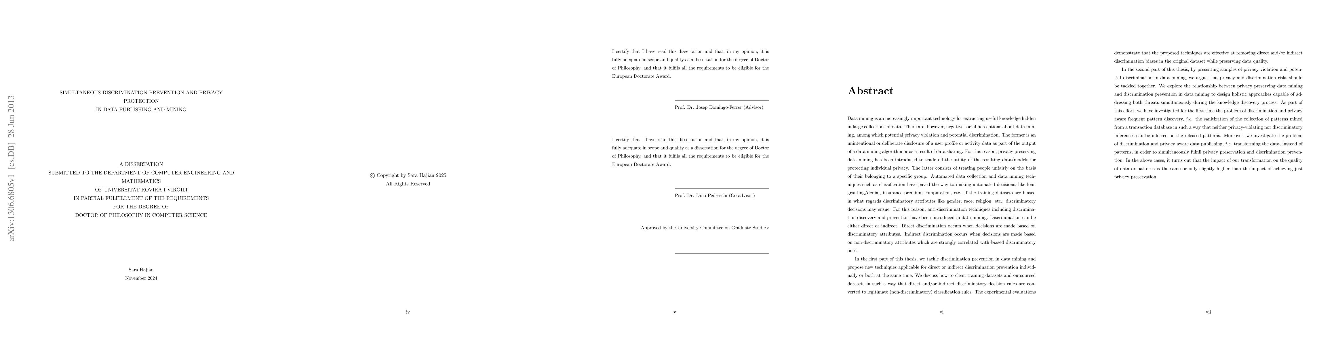 This research proposes new techniques to prevent discrimination and protect privacy in data mining and publishing. It addresses both issues simultaneously by cleaning training datasets and exploring methods for discrimination and privacy-aware frequent pattern discovery and data publishing.