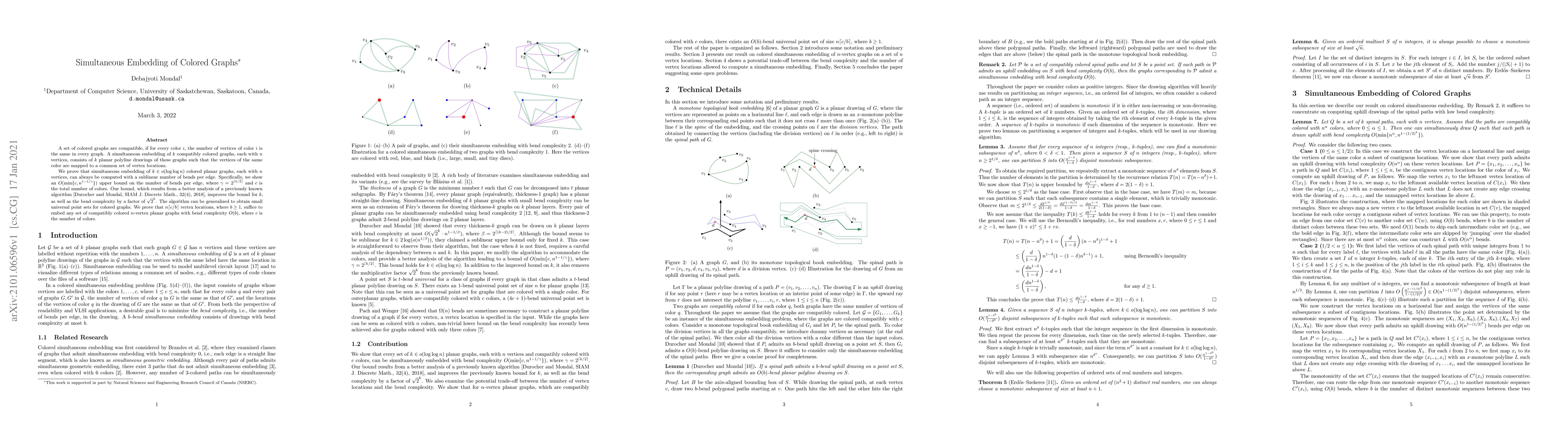 This paper proves that a simultaneous embedding of $k$ compatible colored planar graphs with $n$ vertices each can be computed with a sublinear number of bends per edge, provided $k$ is sufficiently small. The authors improve previous bounds by a factor of $\sqrt{2}^{k}$ and generalize the algorithm to provide small universal point sets for colored graphs.