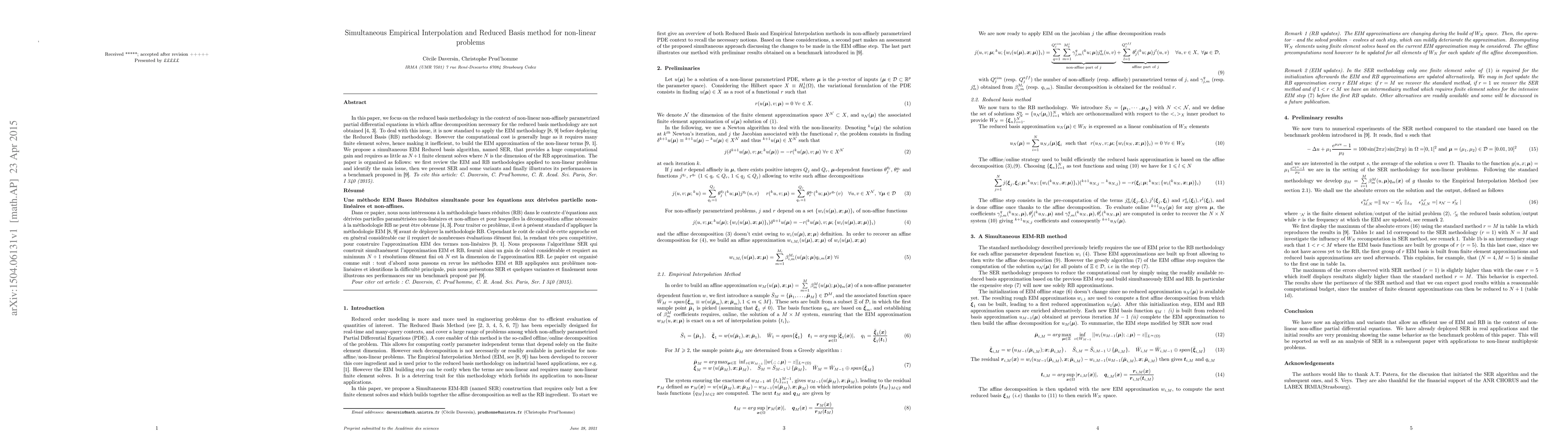 This paper proposes a simultaneous Empirical Interpolation and Reduced Basis (SER) method to efficiently solve non-linear non-affinely parametrized partial differential equations, significantly reducing computational costs by requiring only N + 1 finite element solves, where N is the dimension of the reduced basis approximation. The SER method addresses the inefficiencies of traditional EIM-RB approaches.
