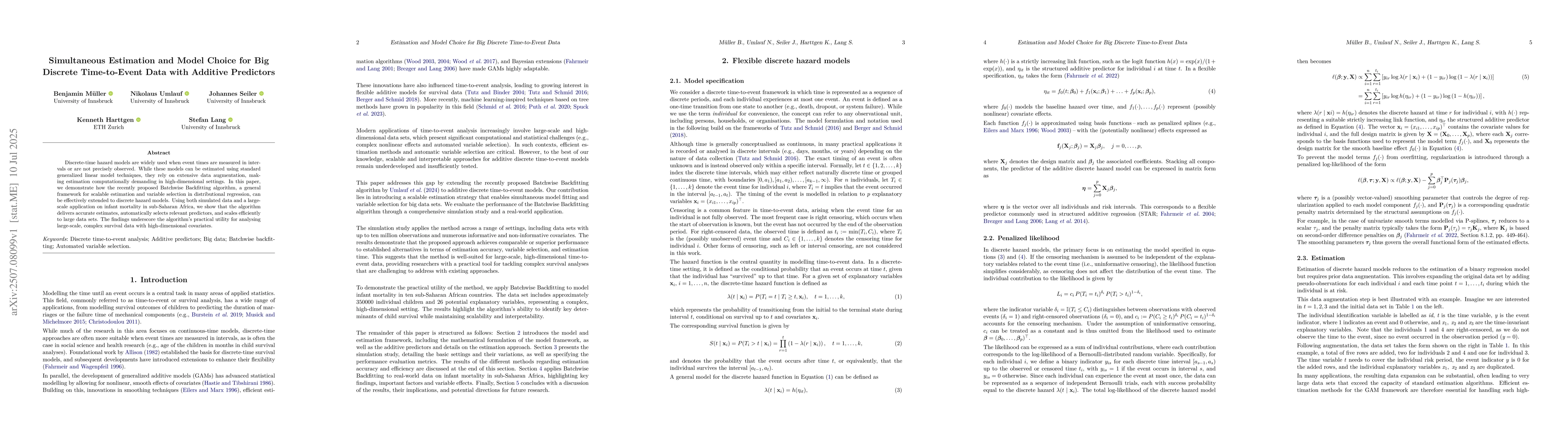 Discrete-time hazard models are widely used when event times are measured in intervals or are not precisely observed. While these models can be estimated using standard generalized linear model techniques, they rely on extensive data augmentation, making estimation computationally demanding in high-dimensional settings. In this paper, we demonstrate how the recently proposed Batchwise Backfitting algorithm, a general framework for scalable estimation and variable selection in distributional regression, can be effectively extended to discrete hazard models. Using both simulated data and a large-scale application on infant mortality in sub-Saharan Africa, we show that the algorithm delivers accurate estimates, automatically selects relevant predictors, and scales efficiently to large data sets. The findings underscore the algorithm's practical utility for analysing large-scale, complex survival data with high-dimensional covariates.