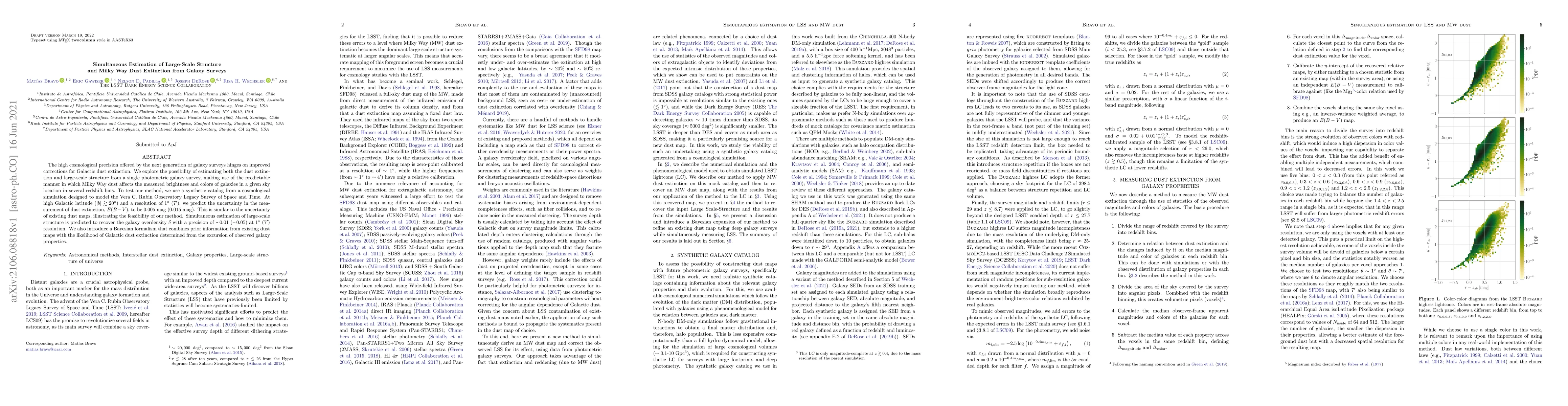 A new method estimates both galaxy dust extinction and large-scale structure from a single galaxy survey, achieving precision similar to existing dust maps and recovering overdensity with 0.01 resolution, promising improved cosmological analysis in galaxy surveys.