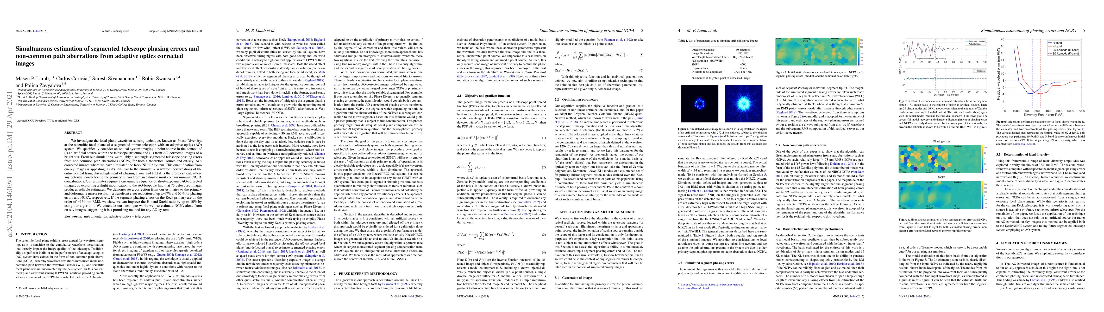 This paper investigates the Phase Diversity technique for estimating segmented telescope phasing errors and non-common path aberrations (NCPA) from adaptive optics-corrected images. The method reliably disentangles these errors from both simulated and real on-sky images, achieving up to a 67% reduction in phasing errors and a 65% reduction in NCPA, thereby improving the H-band Strehl ratio by up to 10%.