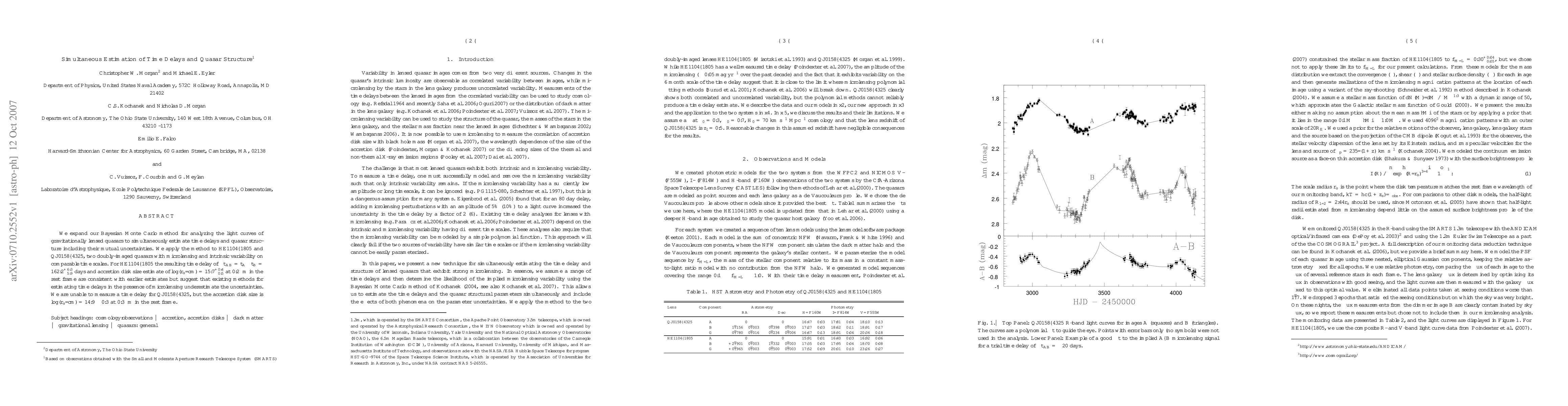 This paper uses a Bayesian Monte Carlo method to simultaneously estimate time delays and quasar structure for two doubly-imaged quasars, revealing that existing methods may underestimate time delay uncertainties. For HE1104-1805, the estimated time delay and accretion disk size are consistent with previous estimates, while no time delay was measured for QJ0158-4325, but its accretion disk size was determined.