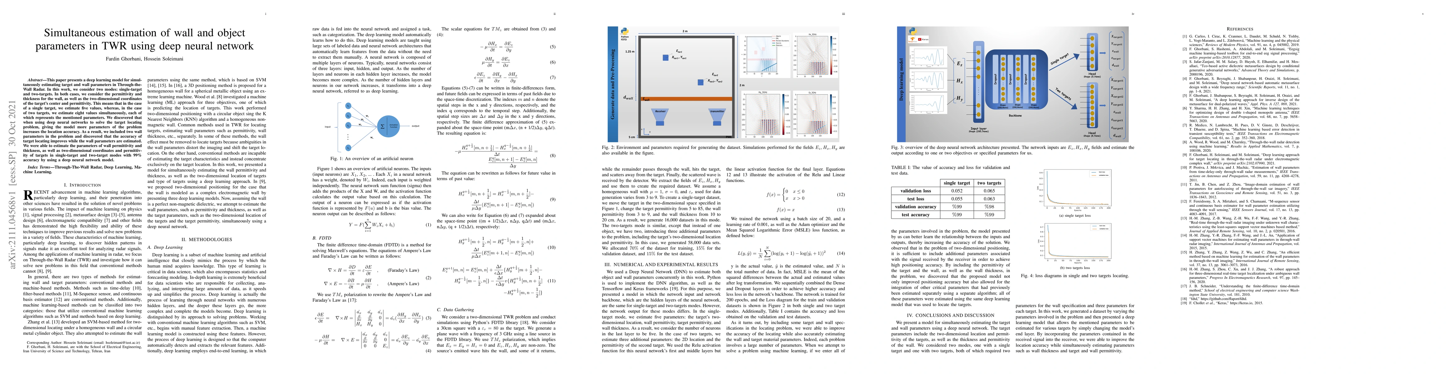 A deep neural network model accurately estimates target and wall parameters in Through-the-Wall Radar, improving location accuracy with more parameters included.