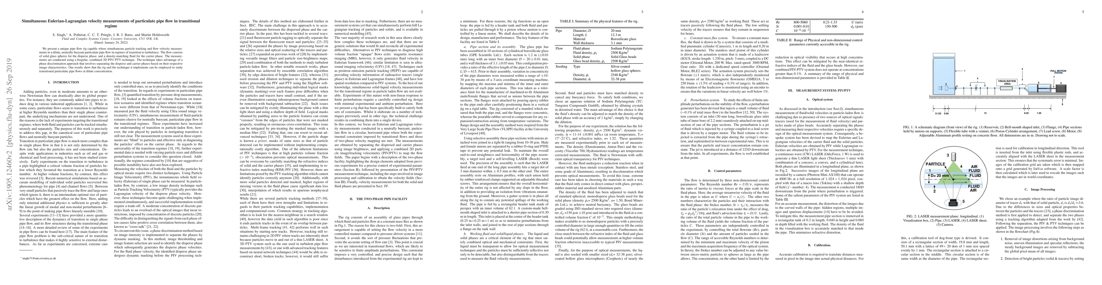 We present a unique pipe flow rig capable where simultaneous particle tracking and flow velocity measurements in a dilute, neutrally buoyant particulate pipe flow in regimes of transition to turbulence. The flow consists of solid glass spheres for the disperse phase, and a density-matching fluid for the carrier phase. The measurements are conducted using a bespoke, combined 2D PIV/ PTV technique. The technique takes advantage of a phase discrimination approach that involves separating the disperse and carrier phases based on their respective image characteristics. Our results show that the rig and the technique it implements can be employed to study transitional particulate pipe flows at dilute concentration.