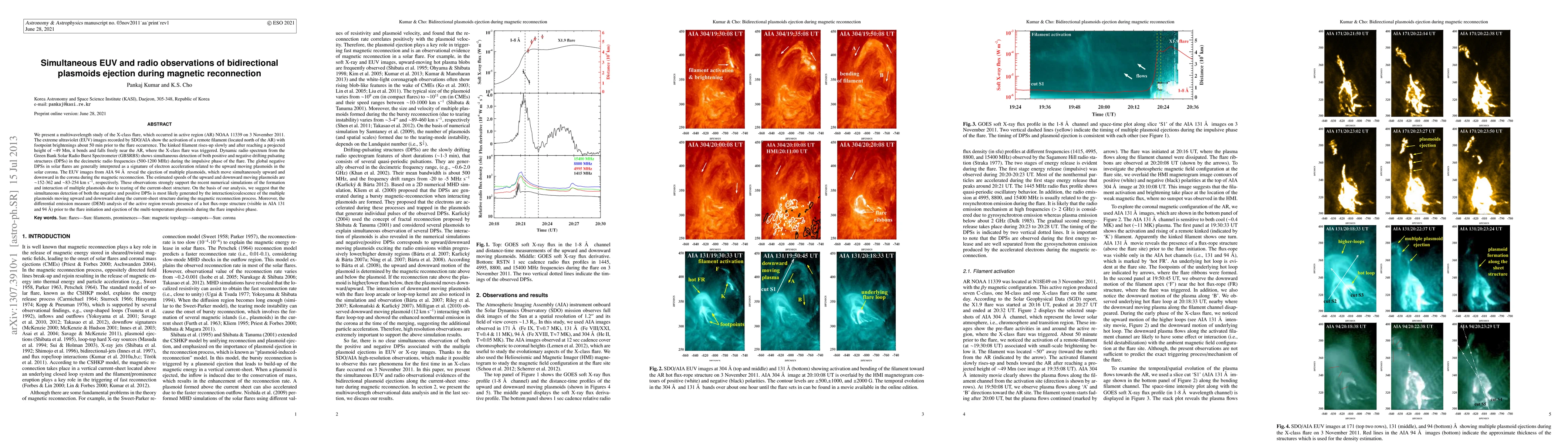 Researchers studied a 2011 X-class solar flare using EUV and radio observations to track the simultaneous ejection of bidirectional plasmoids during magnetic reconnection, revealing speeds of up to 362 km/s.