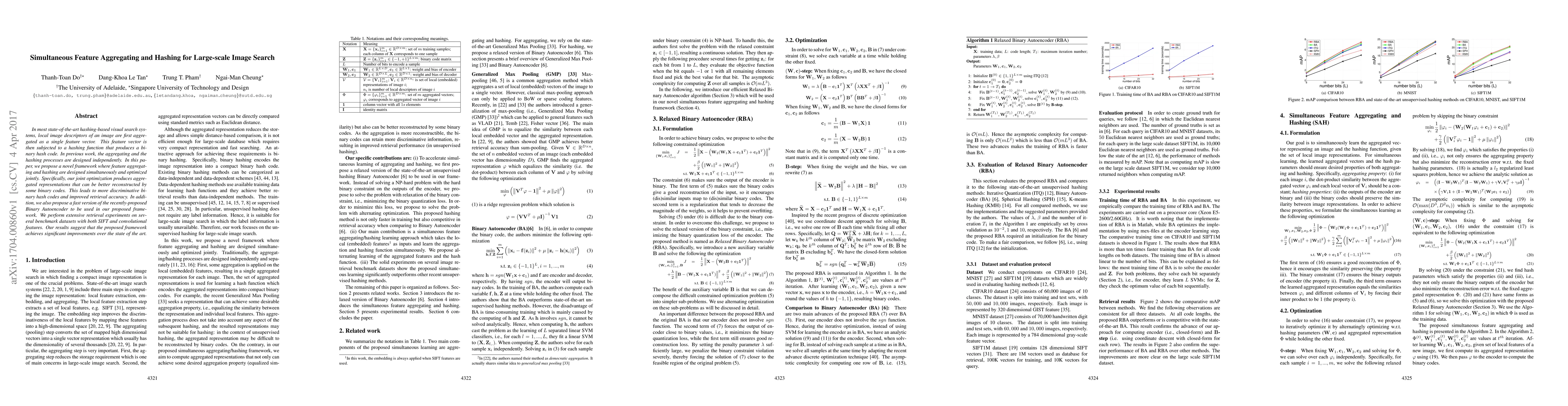 This paper proposes a novel framework for simultaneous feature aggregating and hashing to enhance large-scale image search. By jointly optimizing these processes, the method produces more discriminative binary hash codes and achieves significant improvements in retrieval accuracy over state-of-the-art methods.