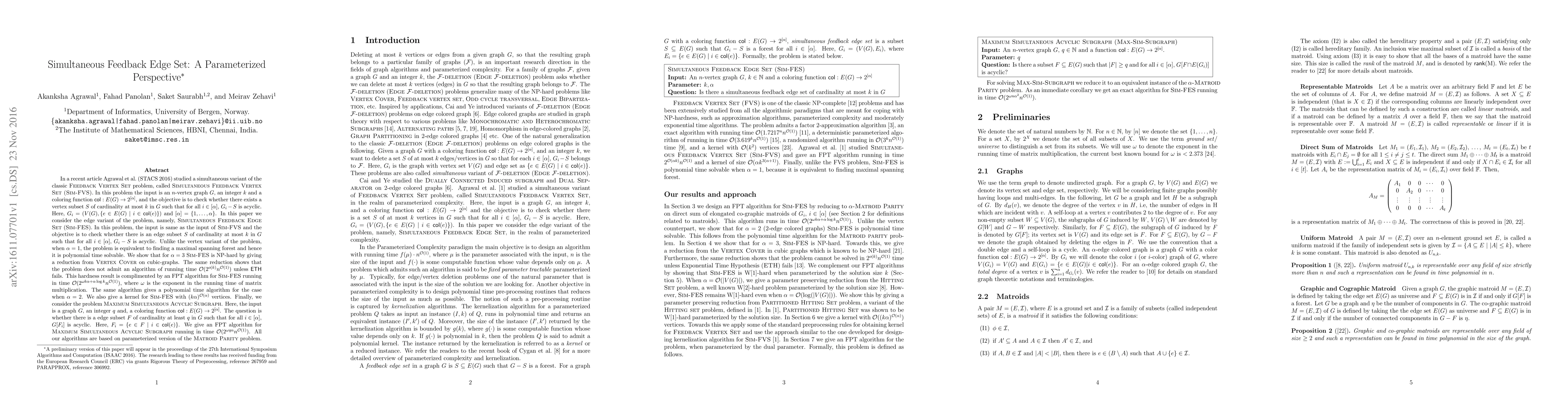 The work is notable for its parameterized complexity analysis of Sim-FES, providing both hardness and algorithmic results, which extend previous research by addressing the problem with colored edges and offering new insights into its computational complexity.