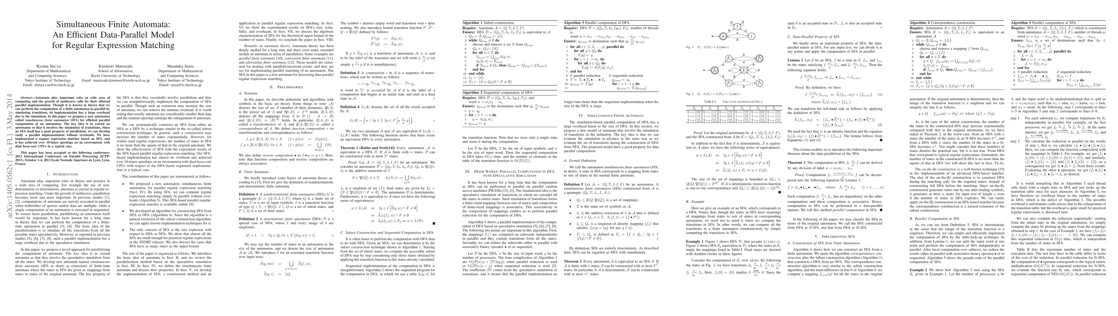 Researchers propose a new automaton called Simultaneous Finite Automaton (SFA) to efficiently parallelize regular expression matching, achieving over 10x speedups on dual hexa-core CPUs.
