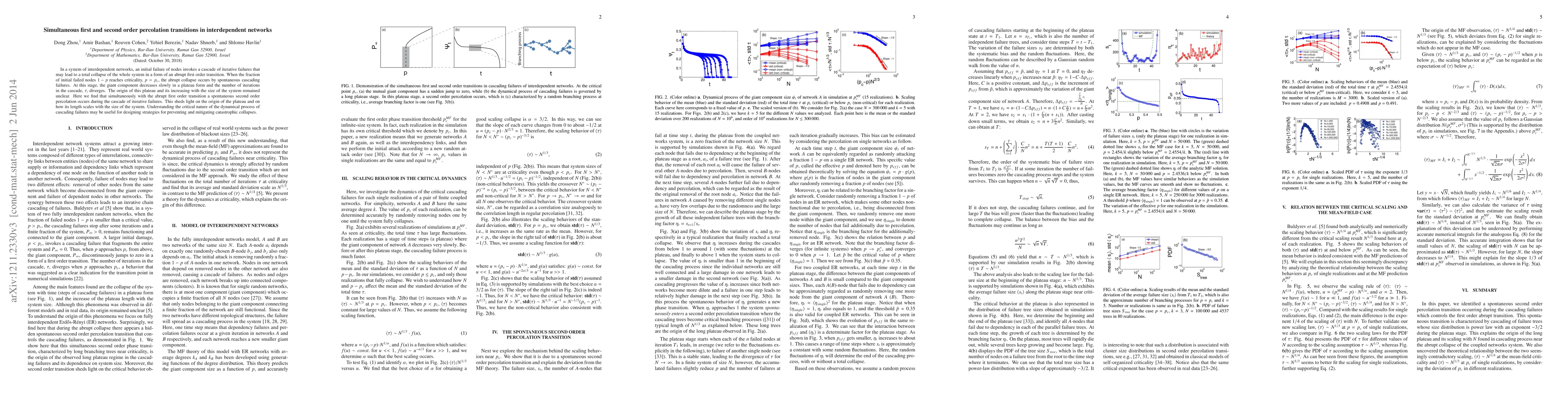 The work is novel in demonstrating simultaneous first and second order percolation transitions in cascading failures of interdependent networks, offering a new perspective on the origin of the plateau stage and its scaling with system size.