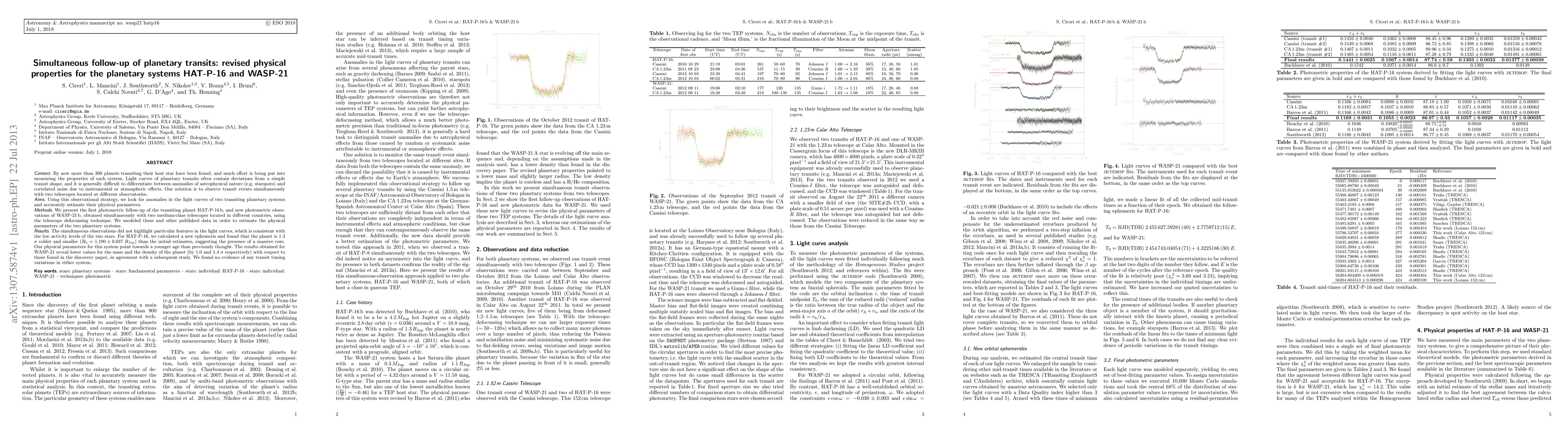 This study uses simultaneous observations from two telescopes to refine the physical properties of the planetary systems HAT-P-16 and WASP-21. The results suggest HAT-P-16 b is colder, smaller, and likely has a massive core, while WASP-21 b has lower mass and density, indicating a younger age for HAT-P-16 and corroborating recent findings for WASP-21.
