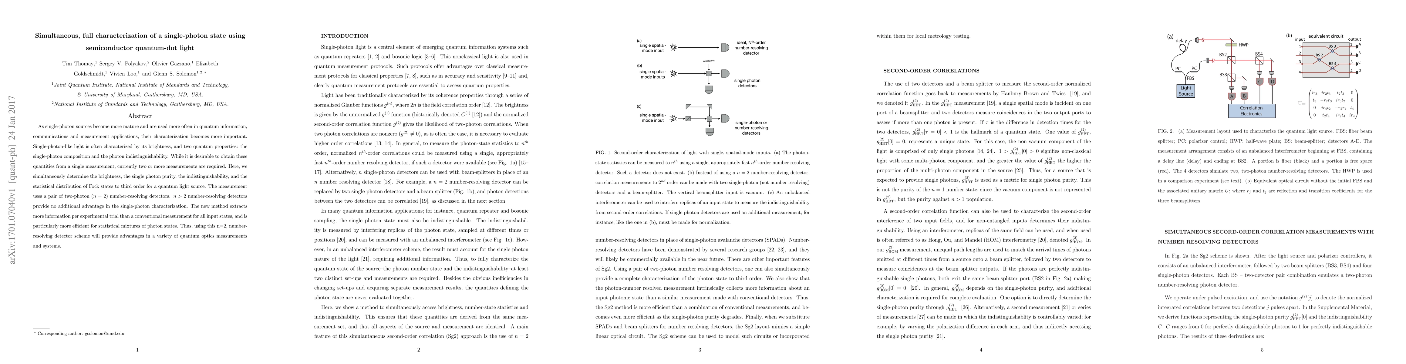 Researchers developed a method to simultaneously characterize a single-photon state using semiconductor quantum-dot light, extracting information on brightness, purity, indistinguishability, and Fock state distribution with improved efficiency.