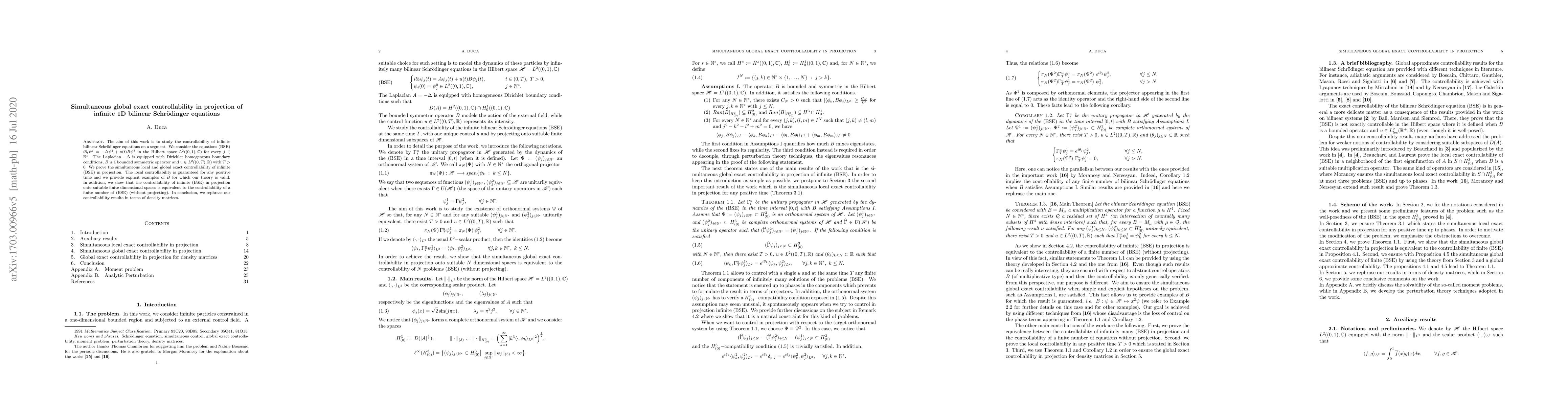 This paper investigates the controllability of infinite 1D bilinear Schrödinger equations in projection, proving both local and global exact controllability. The study also demonstrates the equivalence of controllability in finite-dimensional projections to that of a finite number of equations without projection.