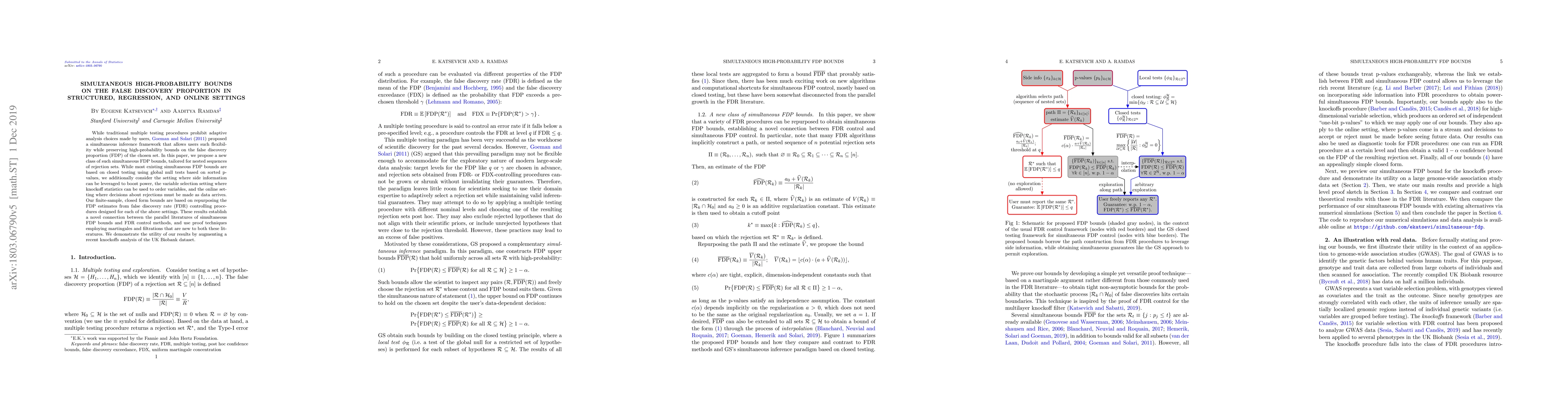 The paper connects parallel literatures of simultaneous FDP bounds and FDR control methods, employing novel martingale and filtration proof techniques.