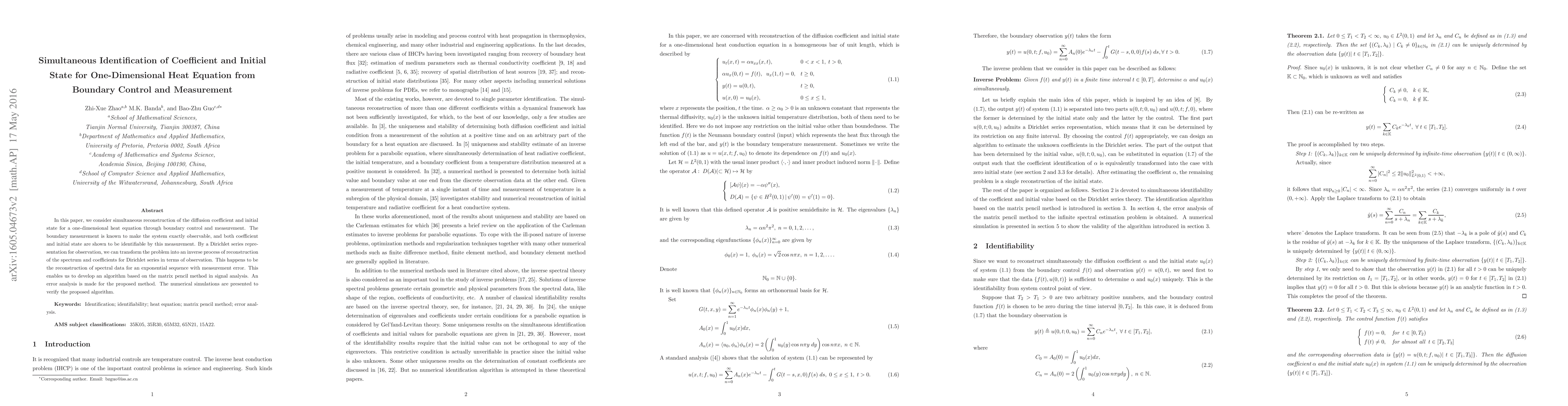 A new algorithm is proposed for simultaneously identifying the coefficient and initial state of a one-dimensional heat equation from boundary control and measurement, enabling precise reconstruction of thermal properties.