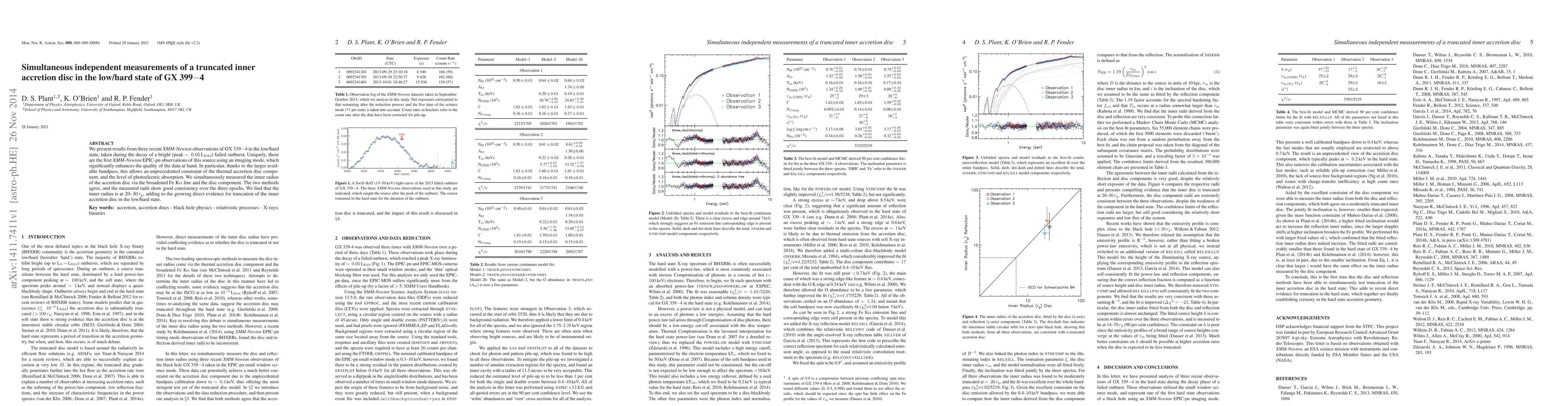 We present results from three recent XMM-Newton observations of GX 339$-$4 in the low/hard state, taken during the decay of a bright (peak $\sim 0.05$ L$_{\rm Edd}$) failed outburst. Uniquely, these are the first XMM-Newton EPIC-pn observations of this source using an imaging mode, which significantly enhances the quality of the data at hand. In particular, thanks to the larger available bandpass, this allows an unprecedented constraint of the thermal accretion disc component, and the level of photoelectric absorption. We simultaneously measured the inner radius of the accretion disc via the broadened Fe K$\alpha$ line and the disc component. The two methods agree, and the measured radii show good consistency over the three epochs. We find that the inner radius is at 20-30 $r_{\rm g}$, adding to the growing direct evidence for truncation of the inner accretion disc in the low/hard state.