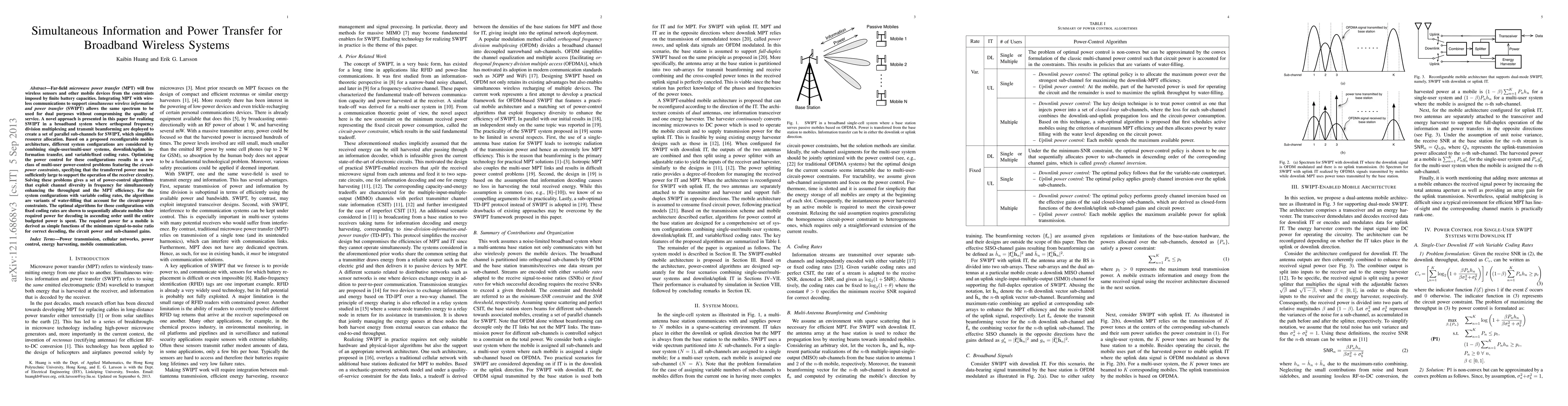 This paper proposes a novel approach for simultaneous information and power transfer (SIPT) in broadband wireless systems, integrating far-field microwave power transfer with wireless communications. It introduces algorithms for optimizing power control under circuit-power constraints, leveraging orthogonal frequency division multiplexing and transmit beamforming to enhance throughput and power transfer efficiency.