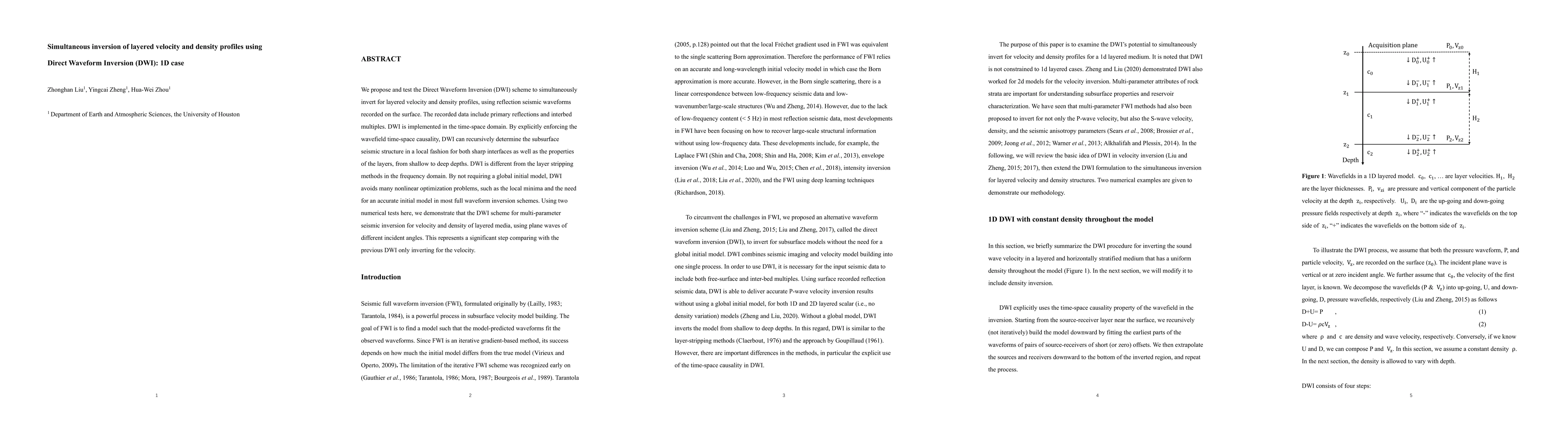 This paper proposes a Direct Waveform Inversion (DWI) scheme to simultaneously invert for layered velocity and density profiles using reflection seismic data. Unlike traditional methods, DWI avoids nonlinear optimization issues by not requiring an accurate initial model, demonstrating its effectiveness through numerical tests.