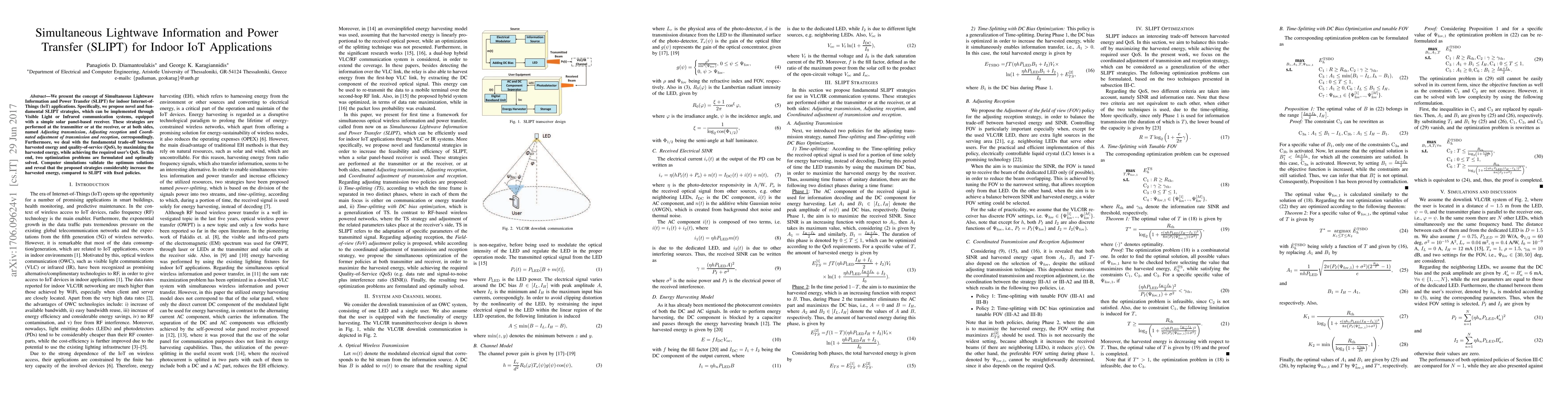 This paper introduces Simultaneous Lightwave Information and Power Transfer (SLIPT) for indoor IoT applications, proposing novel strategies to maximize energy harvesting while maintaining quality-of-service. Simulation results show significant improvements over fixed policies.