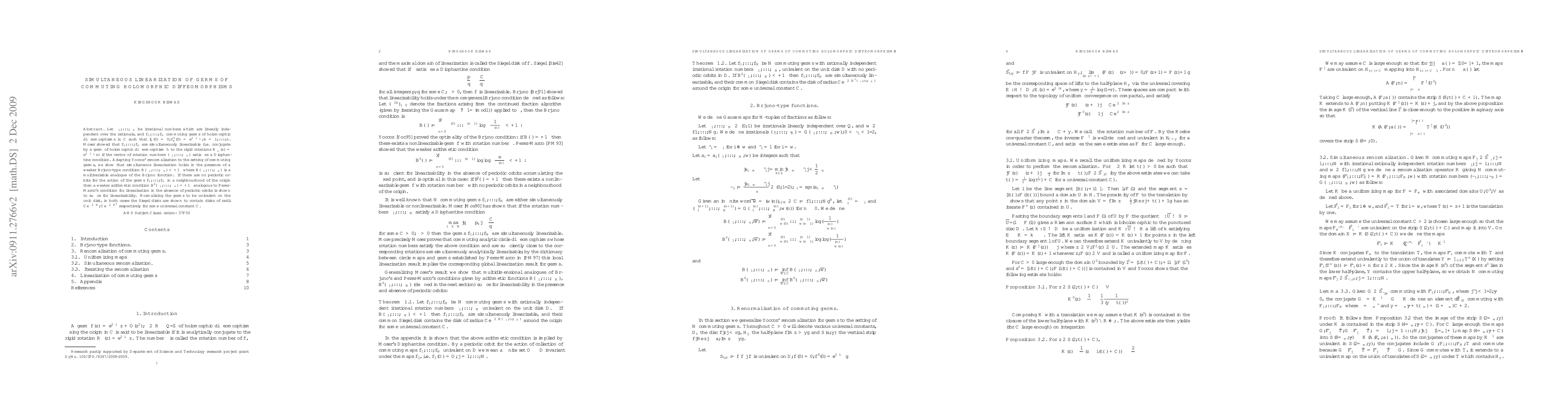 This paper explores the simultaneous linearization of commuting germs of holomorphic diffeomorphisms with irrational rotation numbers, proving that a Brjuno-type Diophantine condition ensures linearizability. It generalizes Moser's result and provides lower bounds for the conformal radii of Siegel disks in terms of the arithmetic conditions.
