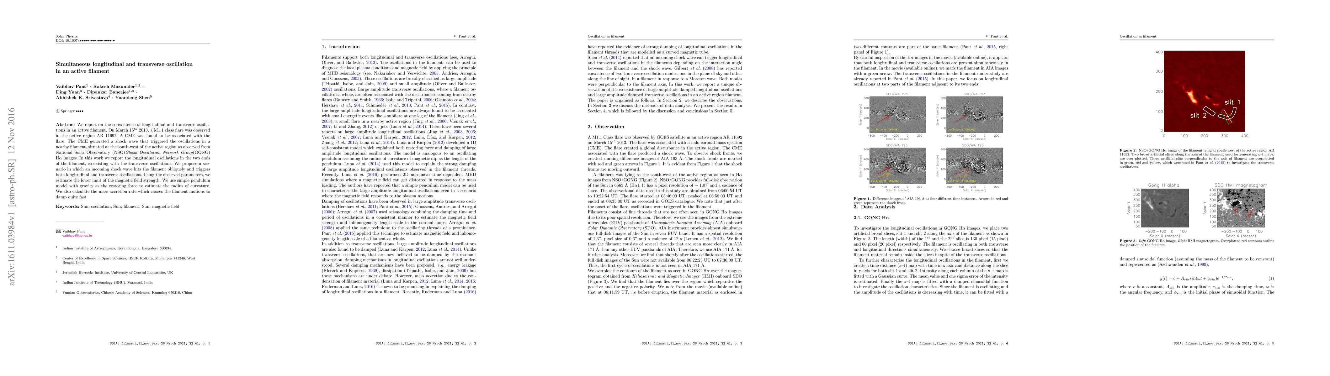 The research employs observations from NSO/GONG Hα and AIA 171°A to study oscillations in an active region filament triggered by a shock wave interaction.