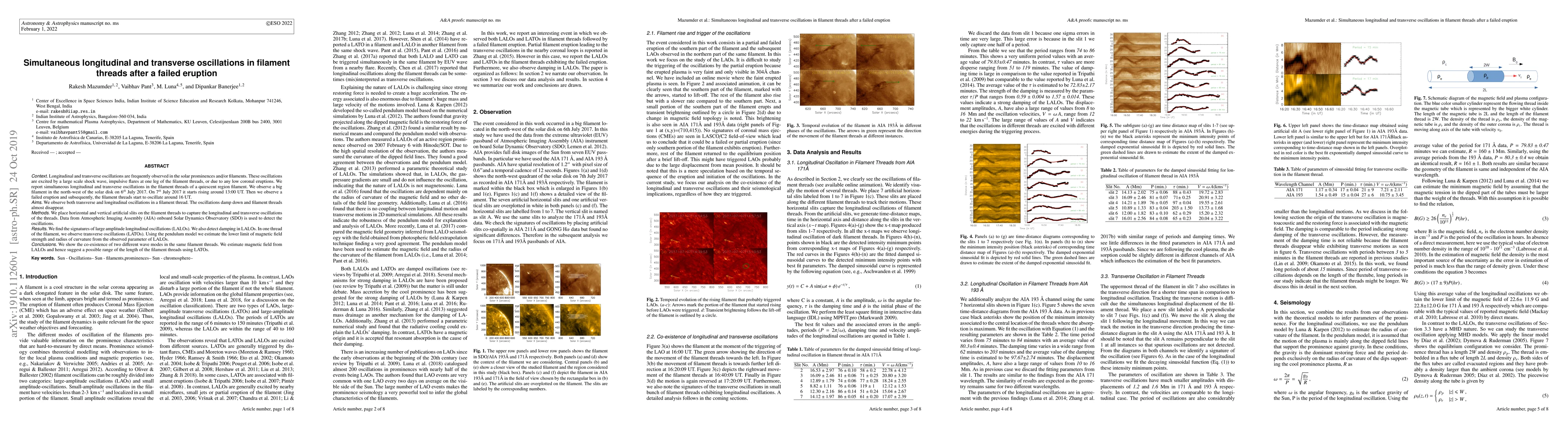 This study reports simultaneous longitudinal and transverse oscillations in solar filament threads following a failed eruption, observed using data from the SDO/AIA. The research identifies large amplitude longitudinal and transverse oscillations, estimates magnetic field strength, and demonstrates the coexistence of different wave modes in the filament threads.