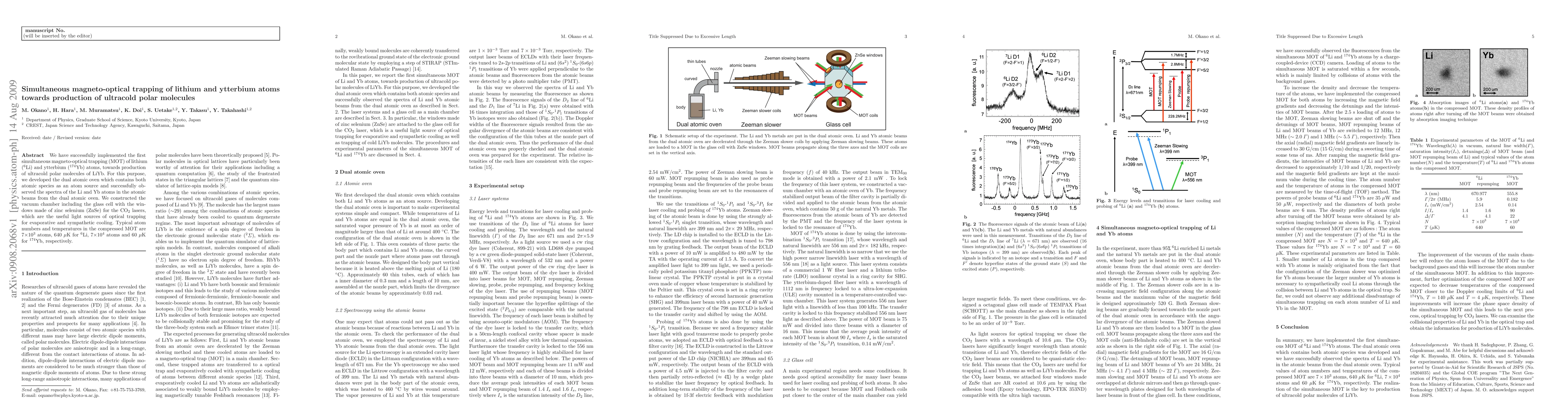 We have successfully implemented the first simultaneous magneto-optical trapping (MOT) of lithium ($^6$Li) and ytterbium ($^{174}$Yb) atoms, towards production of ultracold polar molecules of LiYb. For this purpose, we developed the dual atomic oven which contains both atomic species as an atom source and successfully observed the spectra of the Li and Yb atoms in the atomic beams from the dual atomic oven. We constructed the vacuum chamber including the glass cell with the windows made of zinc selenium (ZnSe) for the CO$_2$ lasers, which are the useful light sources of optical trapping for evaporative and sympathetic cooling. Typical atom numbers and temperatures in the compressed MOT are 7$\times10^3$ atoms, 640 $\mu$K for $^6$Li, 7$\times10^4$ atoms and 60 $\mu$K for $^{174}$Yb, respectively.