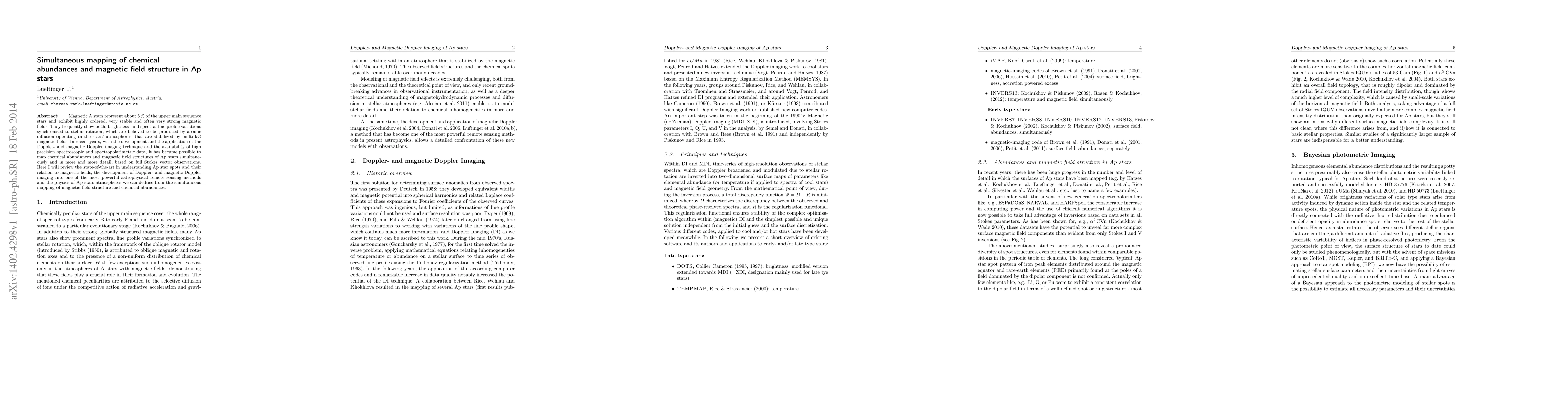This paper reviews the advancements in mapping chemical abundances and magnetic field structures of magnetic A stars (Ap stars) using Doppler and magnetic Doppler imaging techniques, highlighting the correlation between stellar rotation-driven variations and the influence of multi-kG magnetic fields on atomic diffusion in their atmospheres.