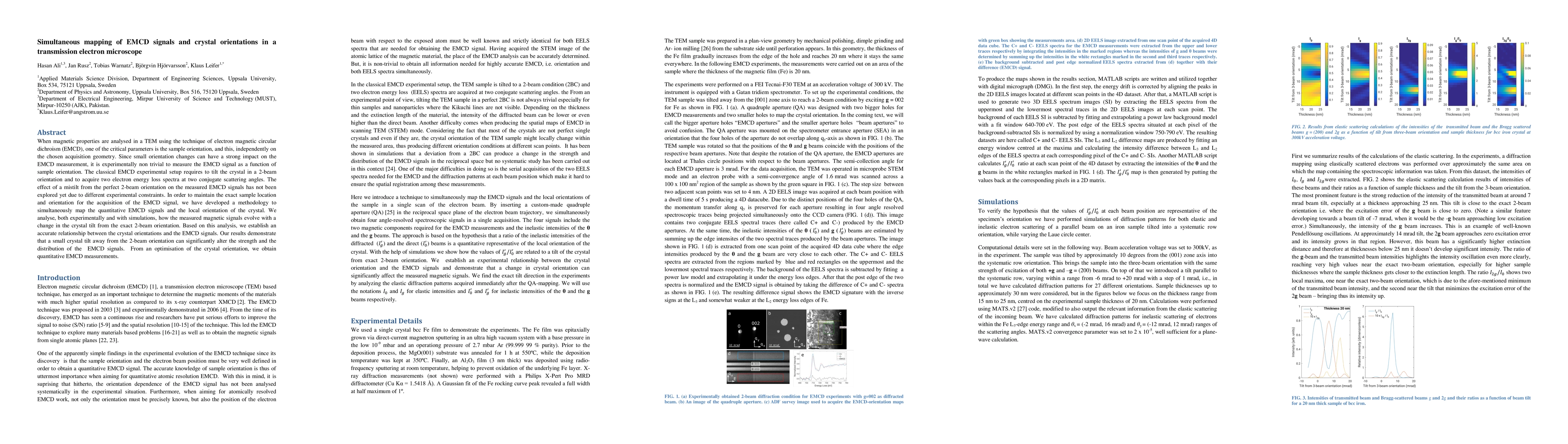 This paper develops a methodology to simultaneously map electron magnetic circular dichroism (EMCD) signals and crystal orientations in a transmission electron microscope, revealing that small crystal tilts from the perfect 2-beam orientation can significantly alter EMCD signals, thus optimizing crystal orientation for accurate EMCD measurements.
