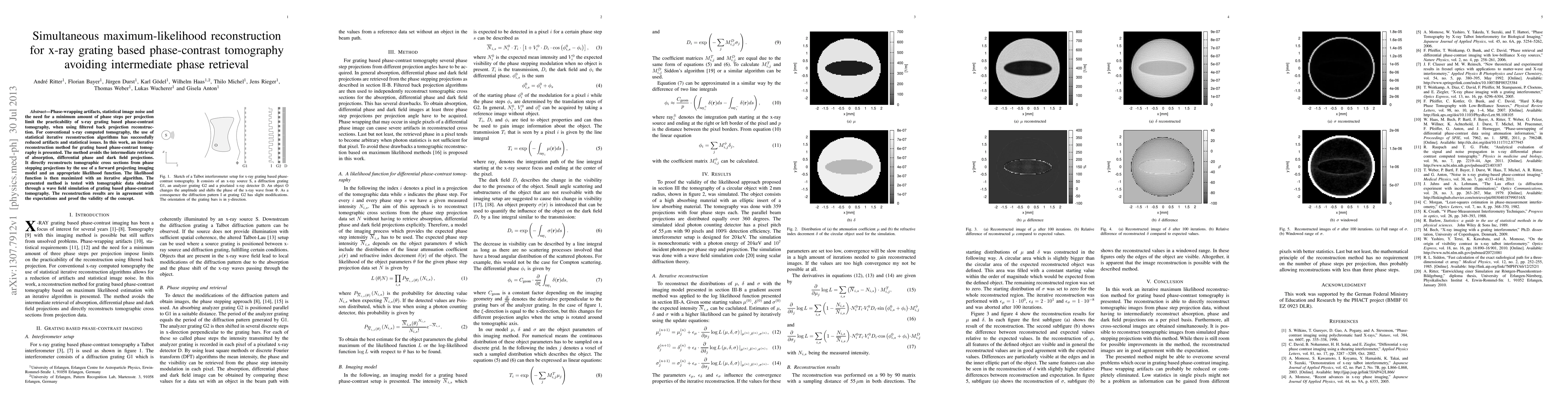This paper proposes an iterative reconstruction method for x-ray grating-based phase-contrast tomography that directly reconstructs tomographic cross sections from phase stepping projections, avoiding intermediate phase retrieval and thus reducing artifacts and noise. The method uses a forward projecting imaging model and maximizes a likelihood function iteratively, demonstrating effective results through wave field simulations.