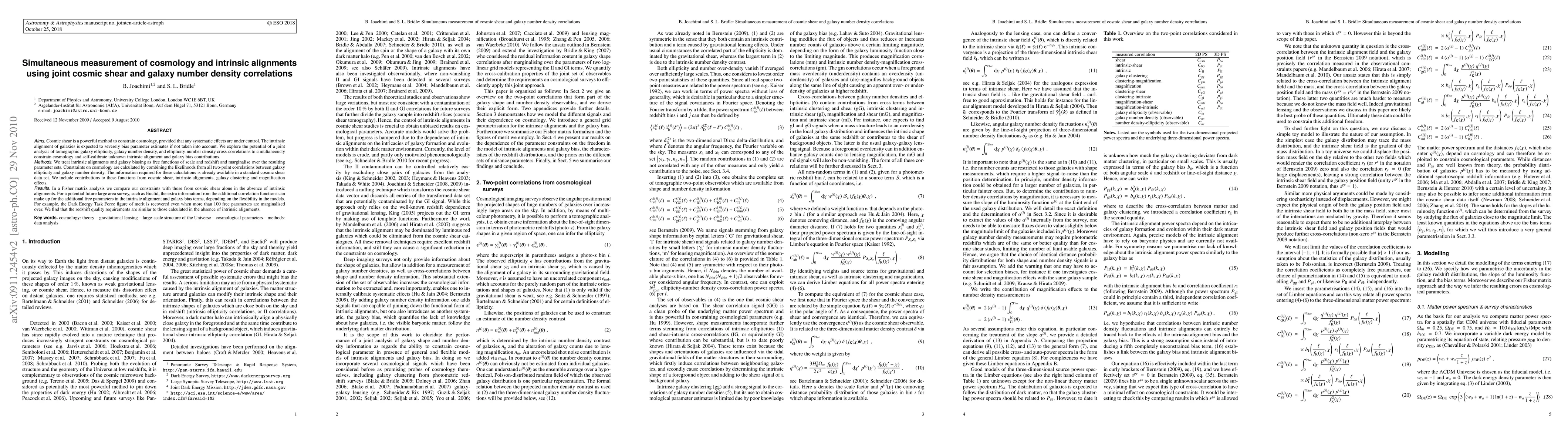 The paper introduces a novel approach to simultaneously measure cosmological parameters and calibrate intrinsic galaxy alignments and bias using joint cosmic shear and galaxy number density correlations.