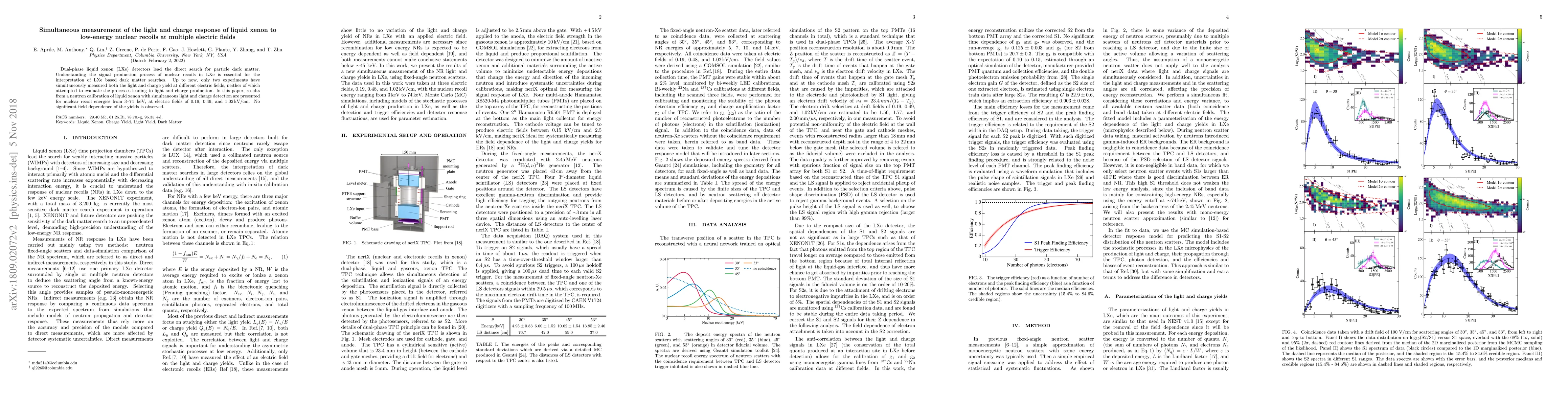 This paper reports on simultaneous measurements of light and charge responses in liquid xenon to low-energy nuclear recoils, providing insights into the signal production process for dark matter detection. The study finds no significant dependence of yields on electric fields, enhancing the understanding of LXe detectors used in dark matter searches.
